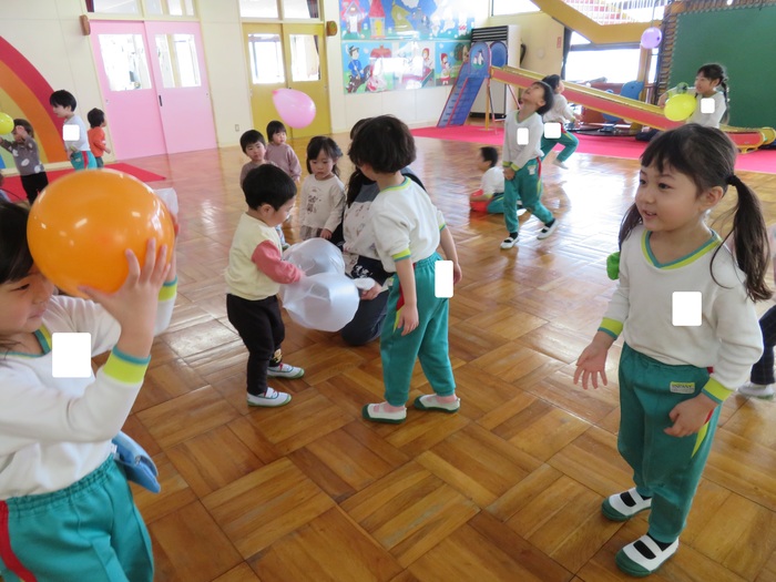 2月ちびっこランドが2/7(水)・2/14(水)に行われました! 幼稚園の年中組、附属保育園リリーのお友達と一緒にサーキット遊びや風船遊びを楽しみました。みんなとっても元気に笑顔いっぱいで遊んでいました。幼稚園のお兄さんお姉さんがとても優しくサポートしている姿がとても微笑ましく感じました。 今年度最後のちびっこランドは、2月27日(火)のお店やさんごっこです!幼稚園のお友達と一緒に楽しみましょうね★ | ||