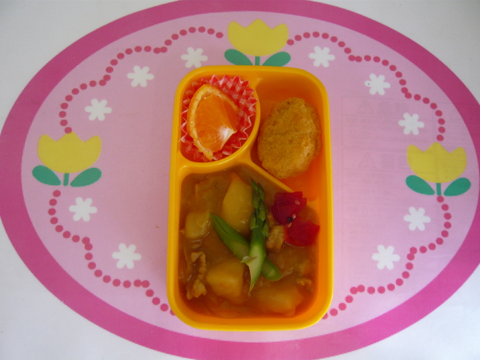 令和6年 3月14日(木) ★ 春野菜カレー ★ チキンナゲット ★ 福神漬 ★ オレンジ | ||