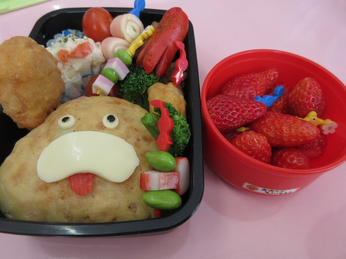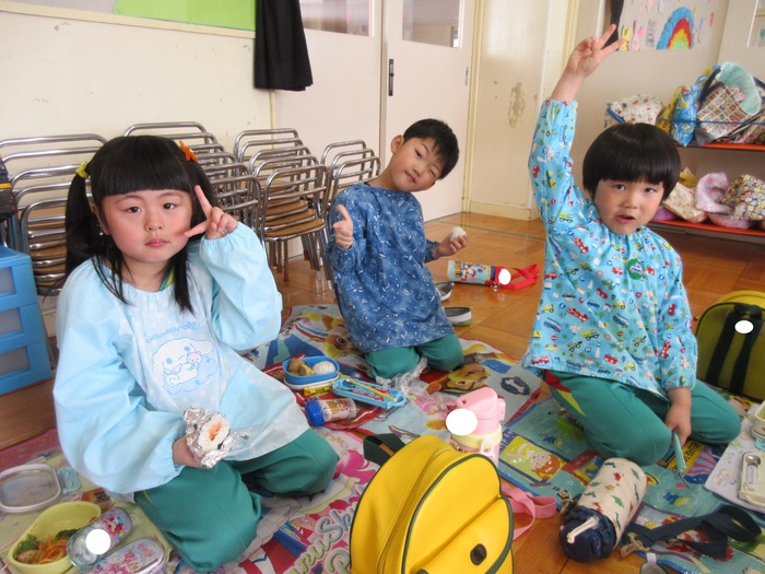 ゆり組・ちゅうりっぷ組のお弁当を食べる様子です。