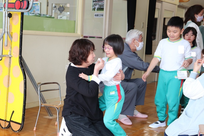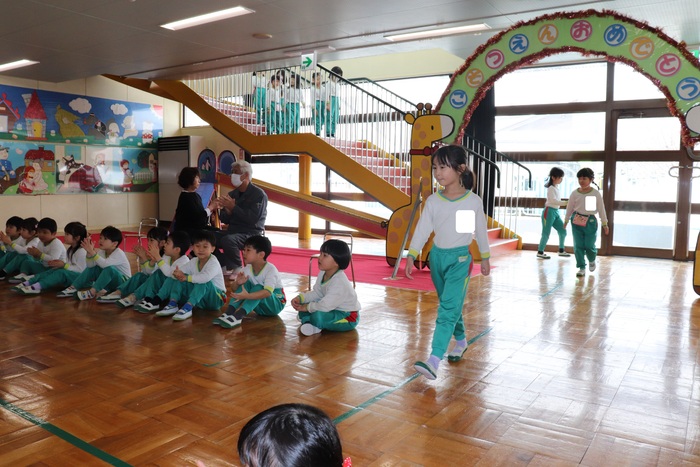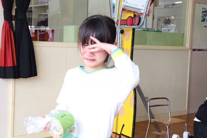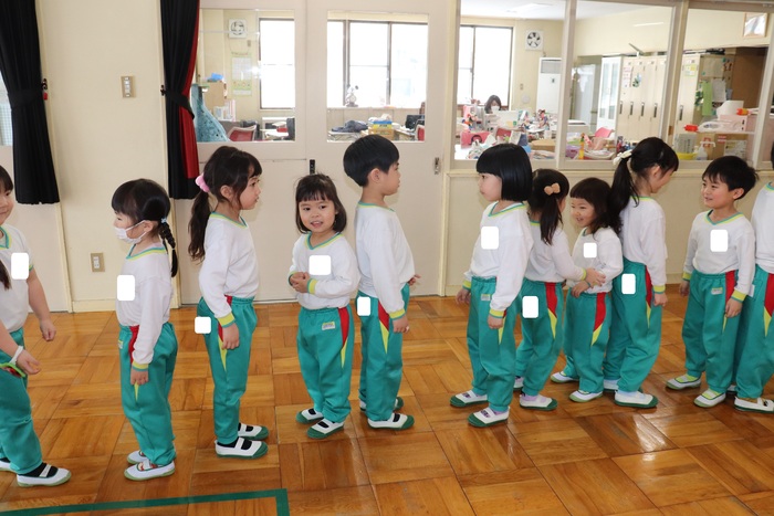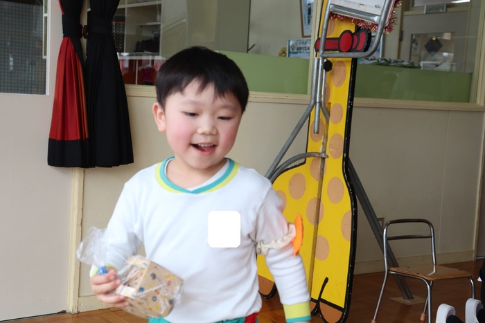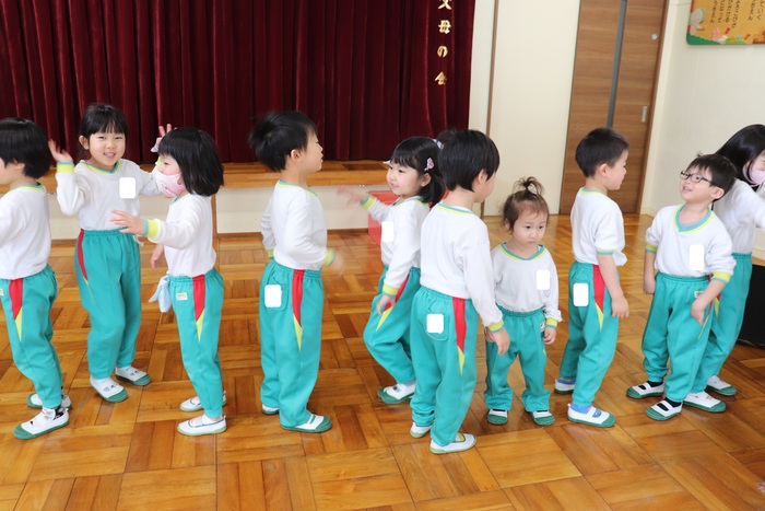 3月18日(月)、明日19日卒園式を迎える〝年長 ゆり組〟のお兄さん・お姉さん達のお別れ会を行いました。たくさんの拍手の中、入場したゆり組の皆さんと一緒にリズム遊びやゲームを楽しみ、おやつを食べながらスクリーンに映った園の一年間を振り返ったクイズをしました。会の終盤には、年中、年少・満3歳児からの歌と言葉、年中組が作ったランドセルの貯金箱のプレゼントを贈り、お礼に年長からも歌と言葉を贈りました。最後は、涙涙で退場するお兄さん・お姉さん達…。その姿を見送りながら、お別れを悲しむ年中、年少・満3歳児のお友達。心温まる、とっても素敵なお別れ会となりました。 | ||