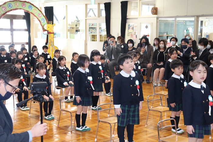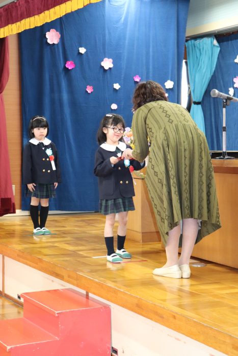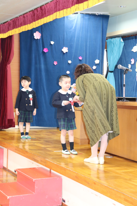 第55回 卒園式が3月19日(火)に行われました。卒園式は、創立以来 55年間ずっと、3月19日に挙行されており、本園にとって〝3月19日〟は園生活を終え、沢山の思い出を胸に巣立っていく子ども達を祝うという大切な日であります。 令和5年度は、23名の卒園児が本園を旅立ちました。長いお友達は、本園での在園は4年となりますが附属保育リリーからの在園と合わせると〝6年間〟本学園に通っておりました。個々に在園年数は違いますが本園に入園したばかりの頃は、まだまだ幼かった皆さんがこうして、逞しく立派に成長することが出来き、嬉しい気持ちでいっぱいです。今度は〝小学校〟という新しい環境での生活が始まりますがみどり幼稚園で培ったことを土台として、より一層大きく成長していってくれることを願っています。 先生達は、ゆり組のみんなのことをこれからも応援しています!! キラキラと輝く、楽しい毎日を小学校でも過ごして下さいね。 また、大きく!逞しく!成長したみなさんに会えるのを楽しみにしていますね。 ご卒園 おめでとうございます。 | ||