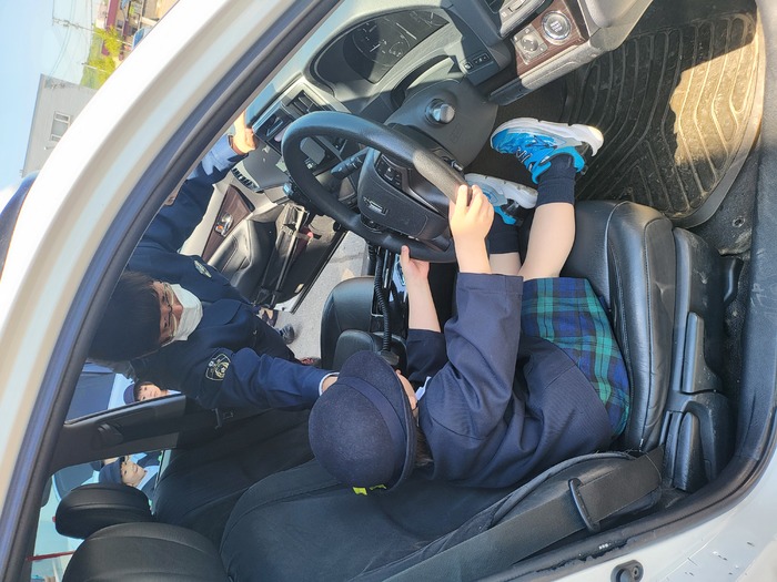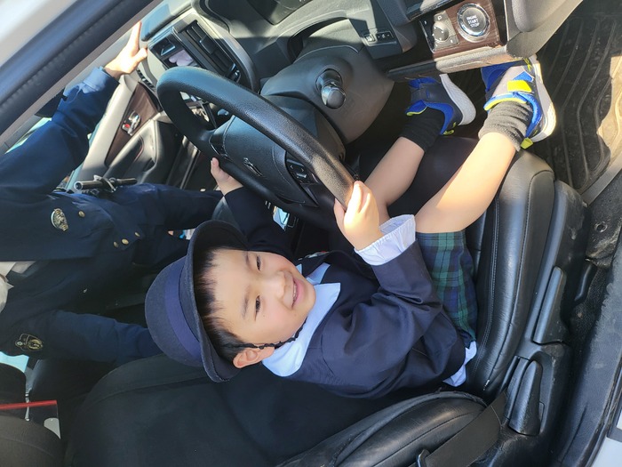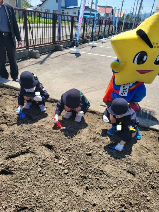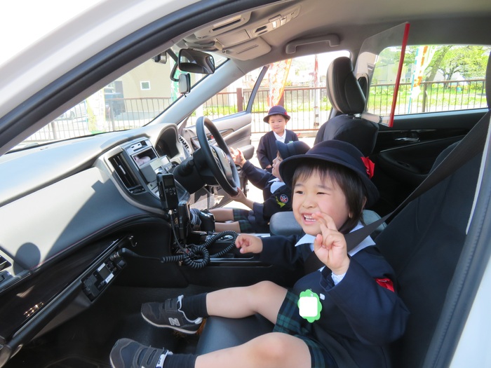 本日、5月14日(火)芦別警察署主催の〝ひまわりの絆プロジェクト〟に年中組が参加しました。 ◆ひまわりの絆プロジェクトとは…◆ 平成23年に京都府内で発生した交通事故で4歳の男の子が亡くなりました。その男の子が生きている時に育てたひまわりから採れた種を皆さんが交通事故に遭わないようにそして命の大切さを知って欲しい…という願いを込めて全国各地でひまわりを育てる活動です。 このイベントに参加する年中組の子ども達には、プロジェクトの主旨を動画絵本などを活用しながら 事前に伝え、その後は ひまわりの植え方も含め 当日に向けて取り組んできました。 本日のイベントでひまわりを植えた後には〝大きく育ちますように…〟と子ども達みんなでお祈りしました。他には、一人ひとりに子ども免許証の作成やパトカーの試乗、アシボーくんとの交流を楽しみました。 なかなか乗ることが出来ないパトカーのハンドルを握らせてもらう等とても貴重な体験をさせていただき子ども達も大喜び! また、子ども免許証を作成の際も自分の名前を担当の方に伝え、写真を撮影する際にちょっぴり緊張している子や満面の笑みでポーズをとる子等、個々に素敵な免許証を作成することが出来ました!【本日、持ち帰りました】 最後は、アシボーくんと一緒に記念撮影をし 終了。 園に歩いて戻る際にも子ども達の会話から『交通事故に気を付けようね!』『信号〝赤〟止まれだよね。〝青〟渡って大丈夫だね。』と交通安全を心掛けている様子が見られました。また、市内の様々な箇所にある黄色い交通安全の旗を見つけるとそこに描かれているアシボーくんに大興奮している子ども達でした。 皆さんも芦別警察署の前を通った際には、これからどんどん大きく育っていくひまわりの花を是非、見ていただき〝命の大切さ〟そして〝交通事故根絶〟の願いを感じていただけたらと思います。 ひまわりが大きく大きく育ってくれることを今後も子ども達と願っています!! | ||