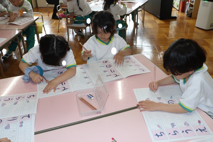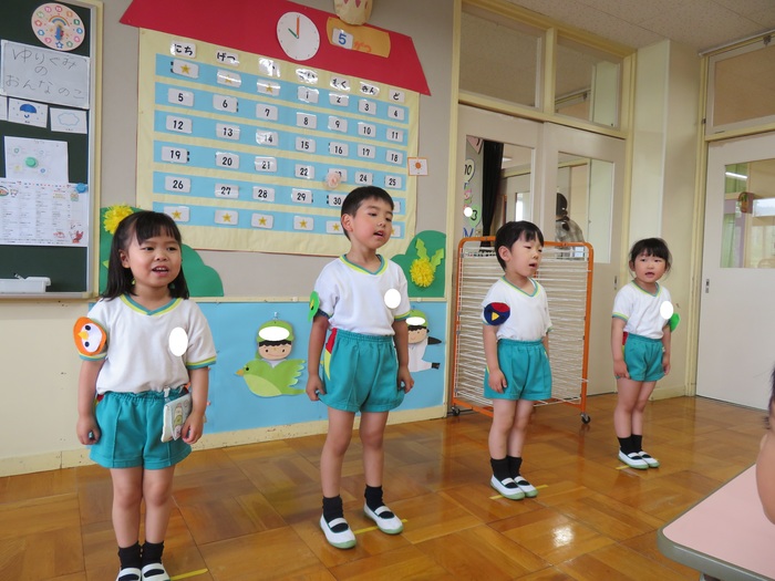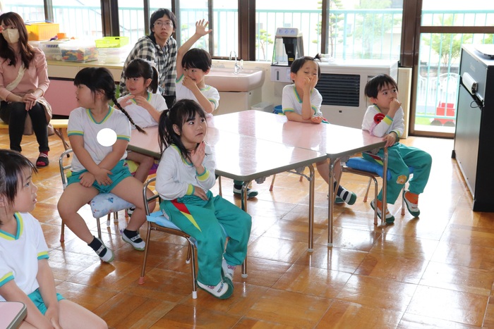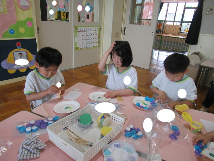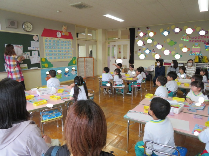 保育参観日2日目は、ばら組『ワーク(せんとひらがな)』『クロスワードクイズ』ゆり組『製作(あじさい時計)』すずらん組『切り紙遊び』さくら組『○△□ゲーム』『絵本(おべんとう)』をそれぞれ各クラスで行いました。2日目もまた違った表情が見られました。ドキドキした子もちょっぴり泣いた子も終わった後には楽しかったねと笑顔で参観日を振り返りました。 | ||