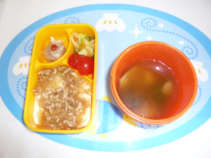 令和6年 7月1日(月) ★ キッズマーボー ★ ミニシュウマイ ★ キャベツのナムル ★ ミニトマト ★ スープ | ||