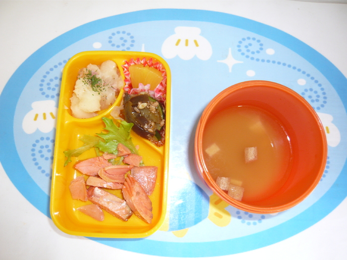 令和6年 7月2日(火) ★ 焼き魚 ★ ジャーマンポテト ★ なすのミート炒め ★ パイン缶 | ||