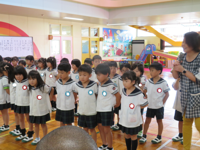 芦別ロータリークラブと年長児との交流会がありました。 まずは年長児から、歓迎の言葉と歌『上を向いて歩こう』のプレゼント! その後は、赤チームと青チームに分かれてピンポン玉を使ったゲームを一緒にして 『手に手つないで』を一緒に歌って、メッセージ付きのプレゼントを渡しました。 地域の方々と交流でき、素敵な時間を過ごすことができました。 | ||
