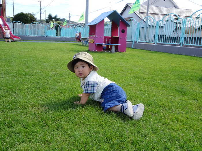 暑さが一段落し、日に日に涼しくなり子ども達も秋の訪れを感じています。 リリ―では、外遊びを中心に活動。園庭でトンボを追いかけたり汽車の大型遊具に乗って「バイバーイ」とお出掛けごっこをしたり、ボールを持って歩き回ったりと元気いっぱい、沢山体を動かしながら楽しく過ごしています。 ひよこ組(0歳児)も歩いたりハイハイをしたり探索活動を楽しんでいます。 | ||
