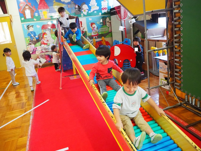 10月最初のちびっこランドは、附属保育園リリーのお友達と一緒にボール遊びを楽しみました。 ホールでは、ボールで遊びながらローラー滑り台を滑っていた子ども達。ちょっぴり涙を流したお友達もいましたが活動中はニッコニコの笑顔もたくさん見られました。お集まりの時間は、ばら組のお兄さん、お姉さん達のサポートのもと 一緒に出席カードにシールを貼ったり、絵本を見たりと楽しく過ごしました! 次回のちびっこランドは、10月17日(木)です。 | ||