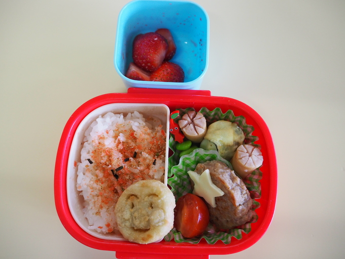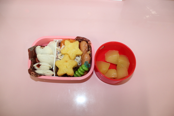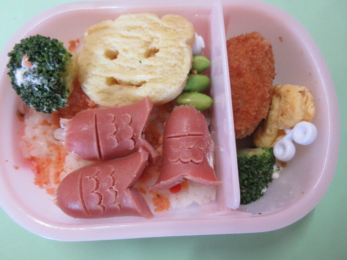 新年度が始まり、初めてのお弁当の日♪ お家の人が作ってくれたお弁当を朝から楽しみにする子ども達! 昼食の時間になると、もりもり美味しそうに食べ、 あっという間に完食している子もいました! 全クラスのお弁当を紹介します! | ||