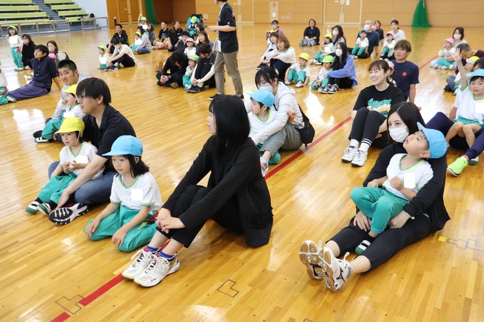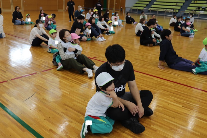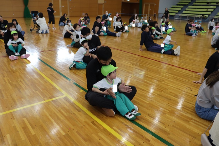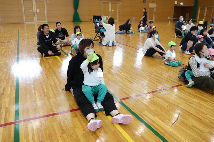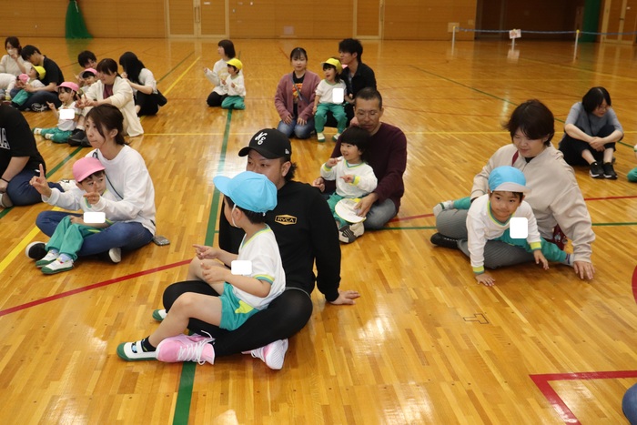 6/3(火)親子遠足からネーミングと活動内容を一新し、初めての実施した親子レクリエーション。 ゲームや触れ合い遊び、スクリーンにクイズや絵本を映したお楽しみ会、フォークダンス等 皆さまと共に楽しい時間を過ごすことが出来ました。ゲームでは、お父さま方にもお手伝いいただき大変盛り上がりました! 今回新たな取り組みではありましたがご参加いただいた皆さまのご協力のおかげで滞りなく終えることができました。本当にありがとうございました。 子ども達、保護者の皆さまの笑顔いっぱいで活動している様子をご紹介します! | ||