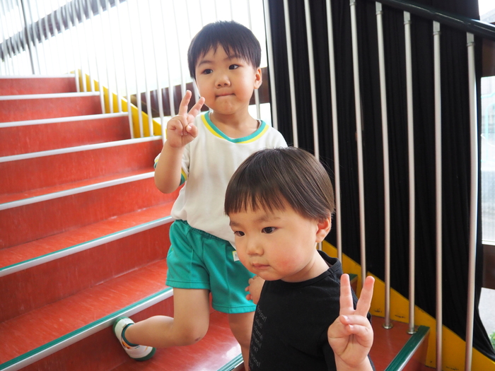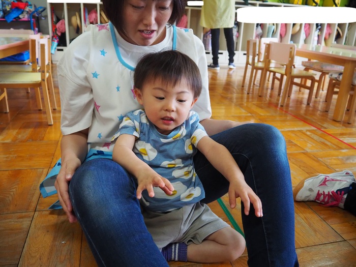 今月、2回目のちびっこランドは〝シール遊び〟。さくら組と附属保育園リリーの2歳児のお友達と一緒に楽しみました。 子ども達の笑顔いっぱい楽しんでいる様子を紹介します。 | ||