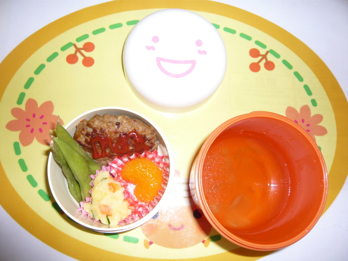 令和7年 9月25日(木) ★ ハンバーグ ★ ポテトサラダ ★ 枝豆 ★ みかん缶 ★ 野菜スープ | ||