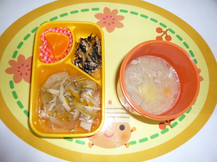 令和7年 9月26日(金) ★ 魚のきのこあんかけ ★ ひじきの煮物 ★ オレンジ ★ ふりかけ ★ 豚汁 | ||
