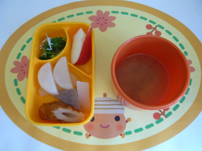 令和7年 10月3日(金) ★ おでん ★ ブロッコリー しらす和え ★ りんご ★ ふりかけ ★ みそ汁 | ||