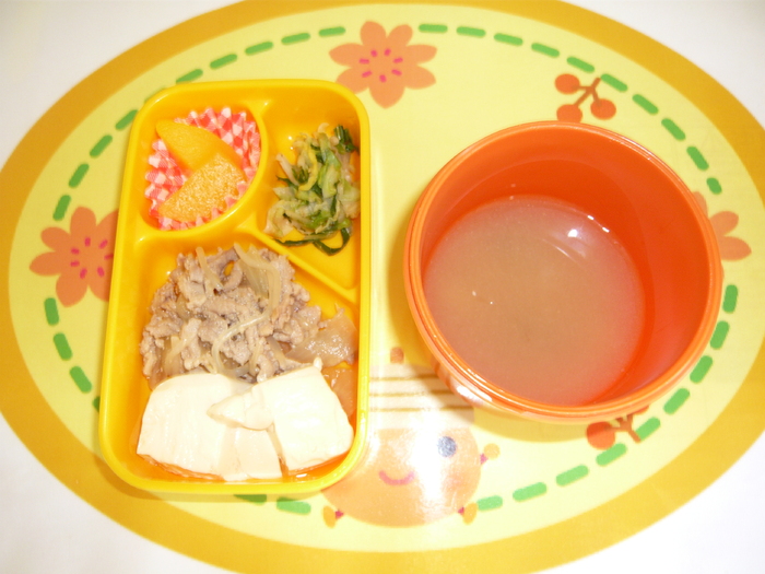 令和7年 10月2日(木) ★ 豆腐のすき煮 ★ ほうれん草のお浸し ★ もも缶 ★ みそ汁 | ||