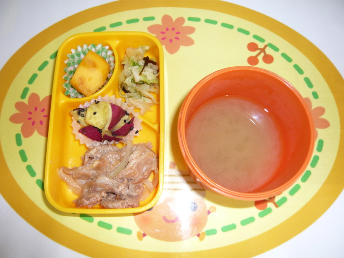 令和7年 9月29日(月) ★ ポークチャップ ★ キャベツの昆布和え ★ 大学芋 ★ かき ★ みそ汁 | ||