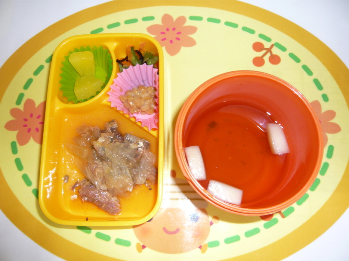 令和7年 10月9日(木) ★ 魚のみぞれ煮 ★ いんげんの昆布和え ★ 納豆 ★ パイン缶 ★ すまし汁 | ||