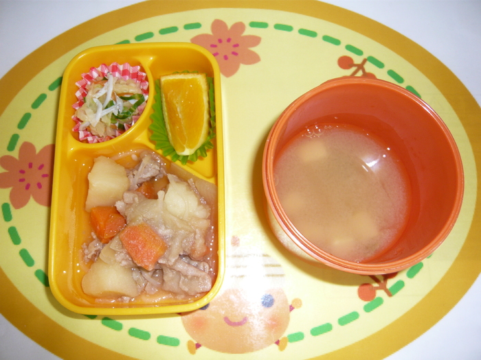 令和7年 11月4日(火) ★ 肉じゃが ★ キャベツのしらす和え ★ オレンジ ★ みそ汁 | ||