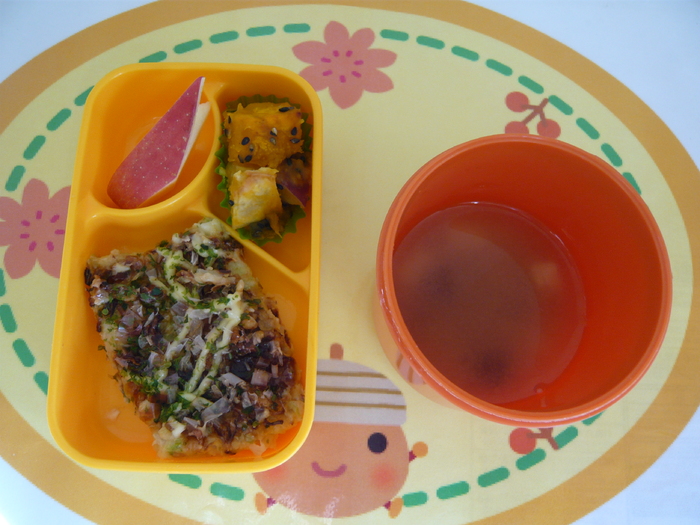 令和7年 11月6日(木) ★ お好み焼き ★ 大学かぼちゃ ★ りんご ★ すまし汁 | ||