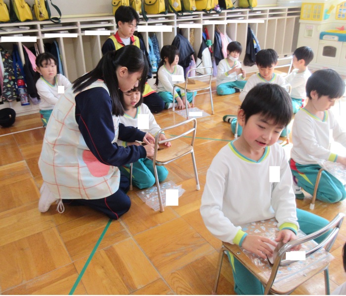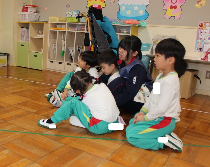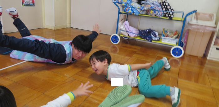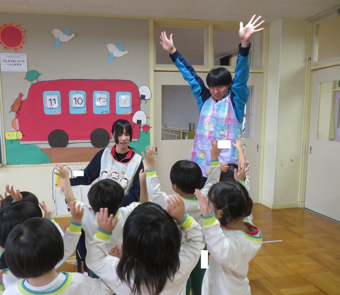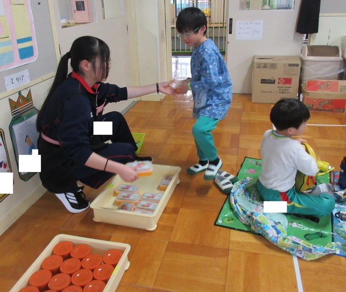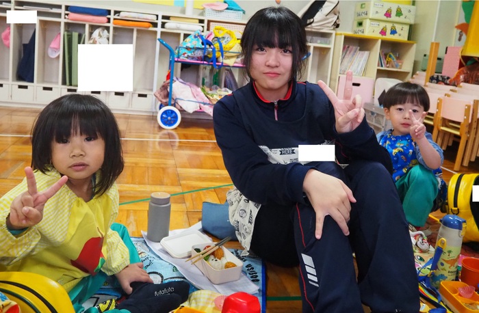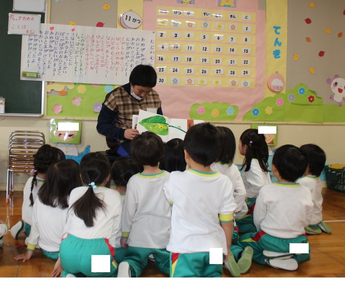 芦別中学校から9人の学生さんが、インターンシップに来てくれました。 幼稚園の子どもたちは、大喜び!! 鬼ごっこやブロック遊びとたくさん遊んでもらい、帰る頃にはすっかり仲良しに… 中学生も初めは緊張気味の表情でしたが、先生のお仕事を手伝ったり、絵本を読んだり、 子どもたちと過ごす中で笑顔もたくさん見られました。 また来てくださいね! | ||
