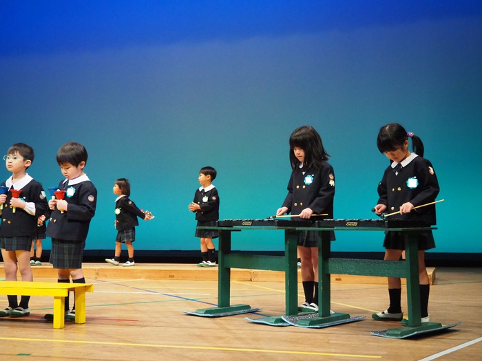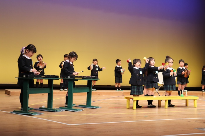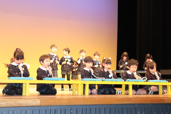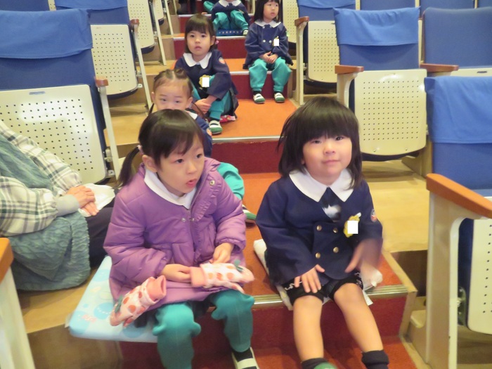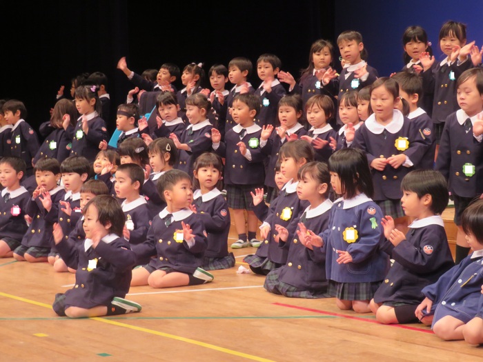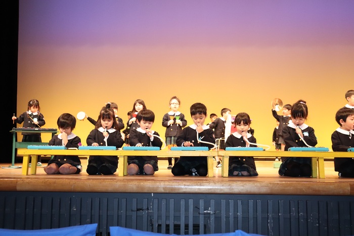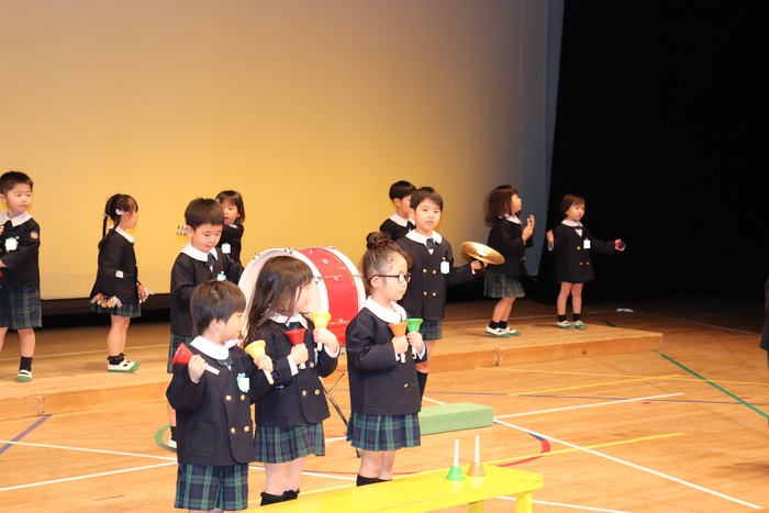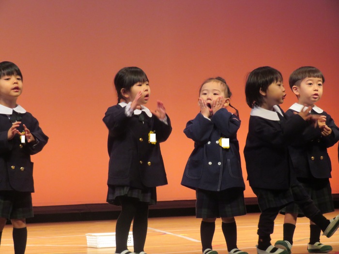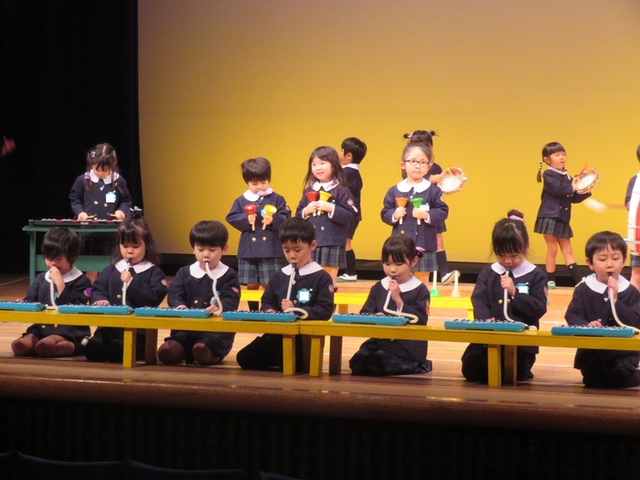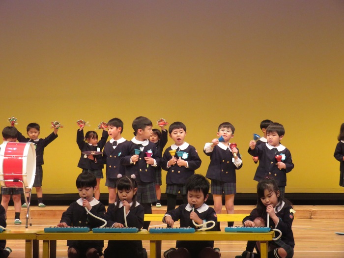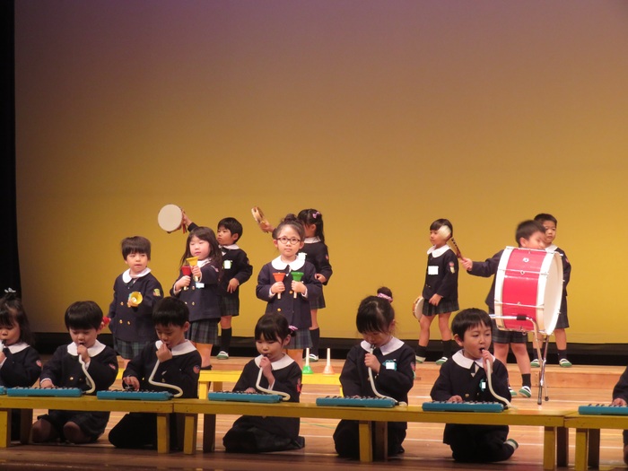 歌と合奏の総練習を行いました。先週は臨時休園となったため今年度初めての市民会館での練習でしたが、張り切って頑張っていた子ども達。休み中、練習が出来なかったため〝忘れちゃっていないかなぁ…〟と心配していましたが、数回練習するとしっかりと思い出し、音楽に合わせて場所を移動したり歌に合わせて踊る姿が見られました。合奏では、年長・年中が楽器の音色を合わせ、ちょっぴり緊張しながら演奏する姿が見られました。みんな真剣な表情で取り組んでいた姿をご覧下さい☆ | ||