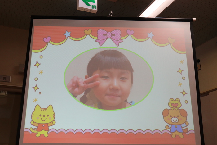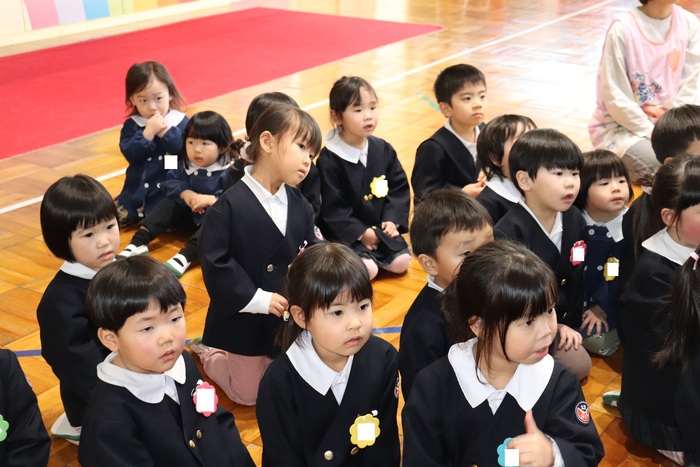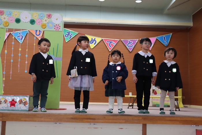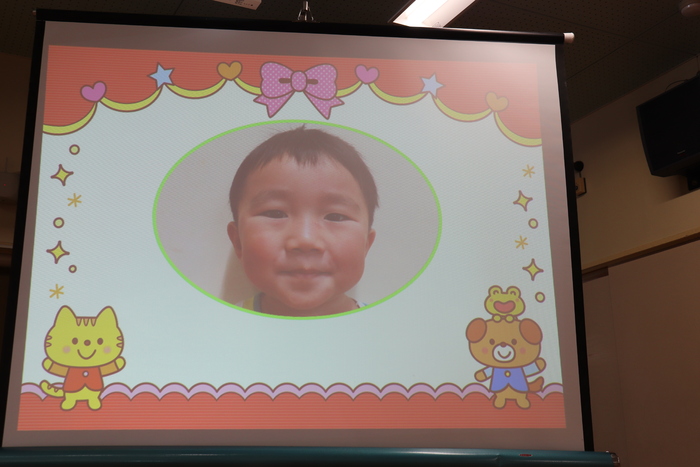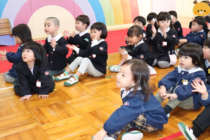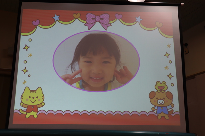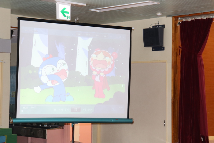 12月の誕生会は、5名のお友達のお祝いをしました。午前中、市民会館で発表会練習をしたため、午後からの誕生会でした。大きな声で自己紹介をしたり、「大きくなったらポケモンのミュウツーになりたい!」など、将来の夢を発表していた誕生者さん達。お楽しみはDVD『あかちゃんまんとコキンちゃん』でした。コキンちゃんが泣く前にあかちゃんまんが泣いてしまう場面や、とても力持ちなあかちゃんまんの姿に大きな笑い声があちらこちらから聞こえてきました。 さぁ、明日は発表会!!今日と同じ〝欠席者『ゼロ』〟で本番を迎え、みんなで力を合わせて楽しむ姿を、たくさんの方に見ていただきたいと思います♪みなさん、頑張りましょうね☆ | ||