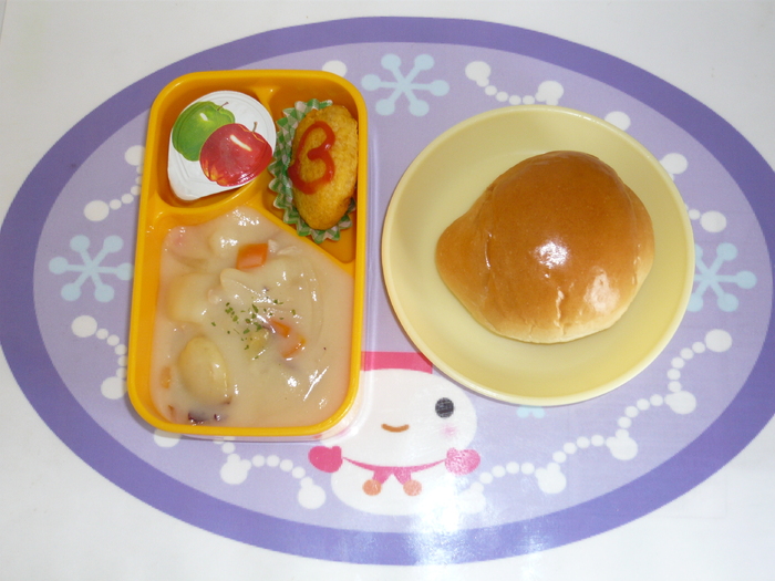 令和7年 12月17日(水) ★ パン ★ クリームシチュー ★ ナゲット ★ 一口ゼリー | ||