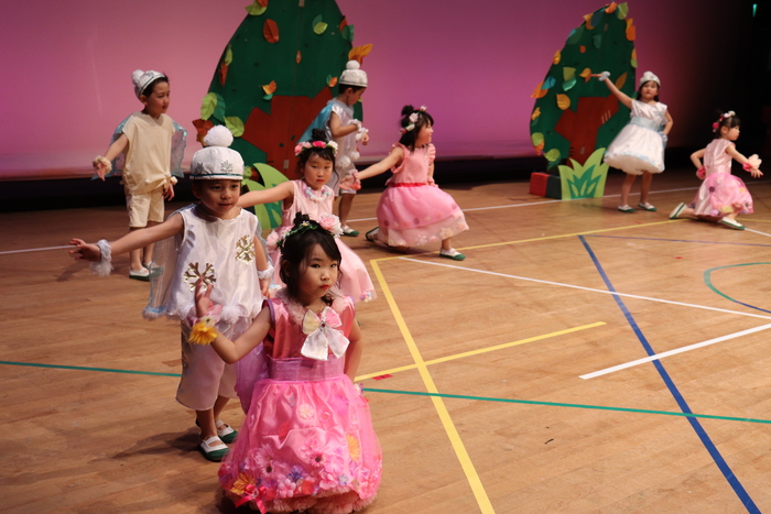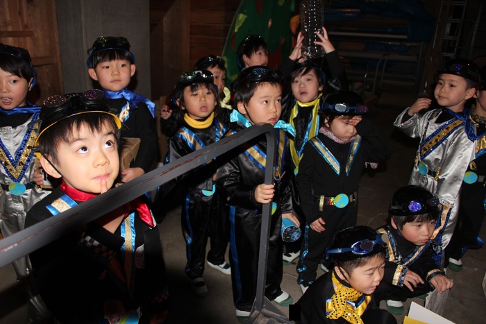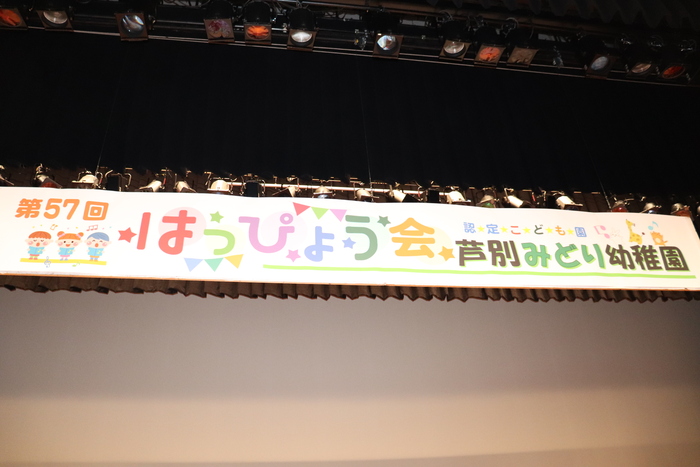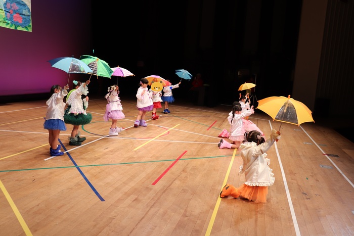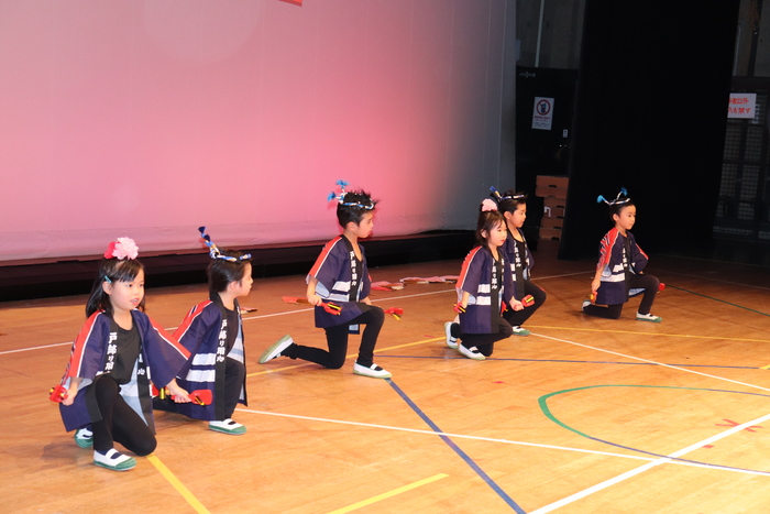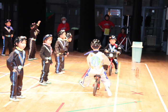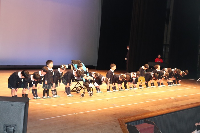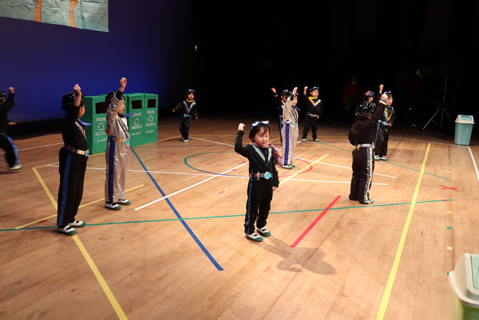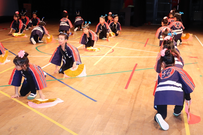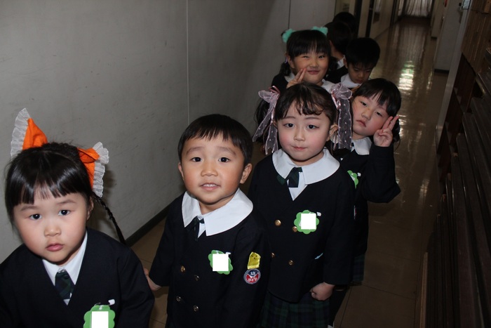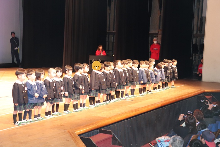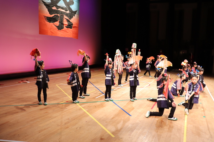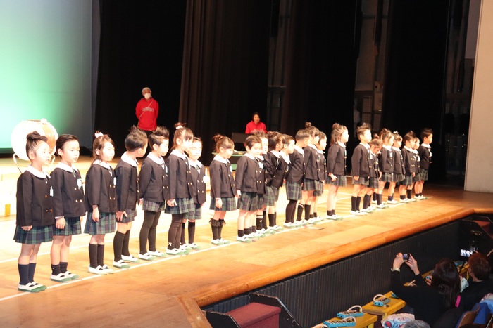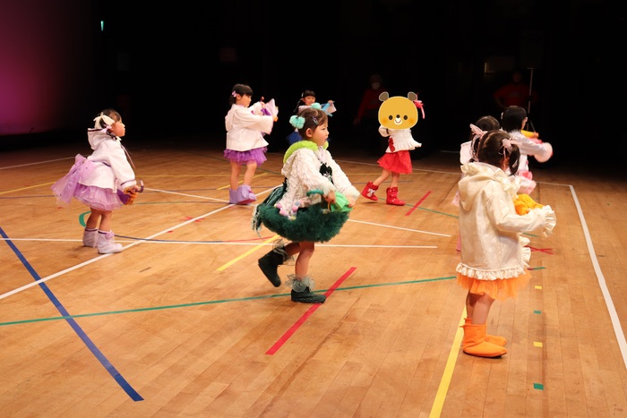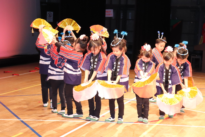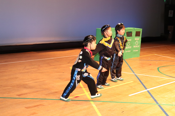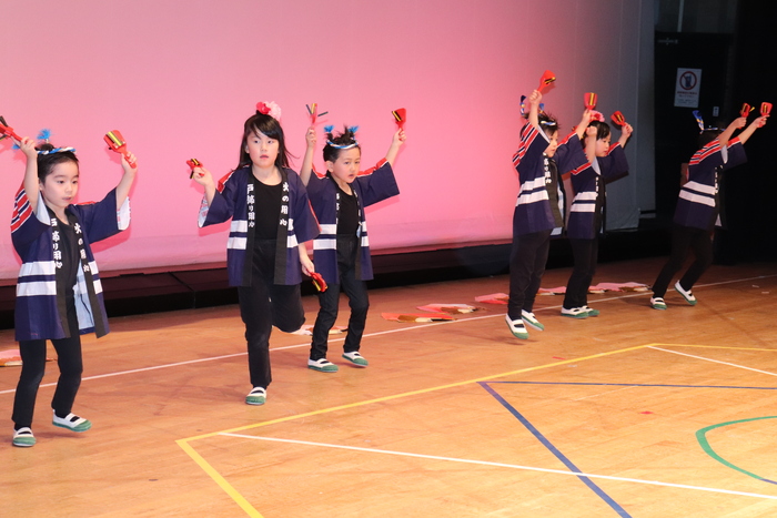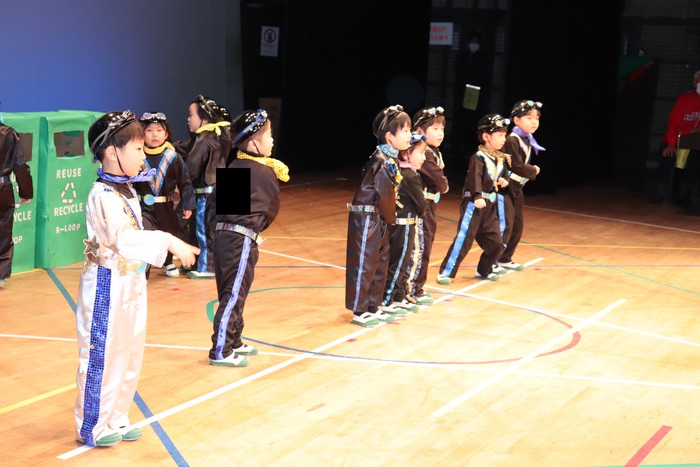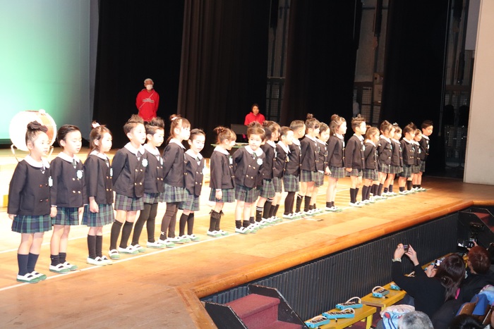 臨時休園があり、市民会館練習がいつもより少ない中で発表会を迎えました。当日は、運動会に引き続き〝欠席者ゼロ〟で発表会を開催できたこと、とても嬉しく思います。たくさんのお客さんの前で、緊張している姿や気持ちが高ぶっている姿、お家の人を探している姿も見られましたが、総練習の時よりも力強く、一所懸命に発表する子ども達の姿が見られました。控室では、手作り衣装に着替えると、嬉しそうに出番を待っていた子ども達。発表後には、満足そうな笑顔があちらこちらで見られました。保護者のみなさま、当日はたくさんのご来場と温かな拍手をいただき、本当にありがとうございました。 | ||