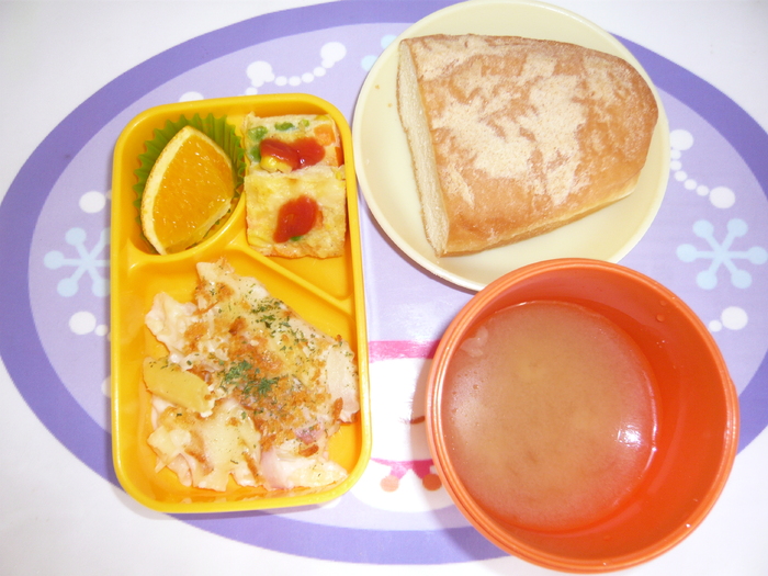 令和8年 1月28日(水) ★ パン ★ マカロニグラタン ★ キッシュ ★ スープ ★ オレンジ | ||