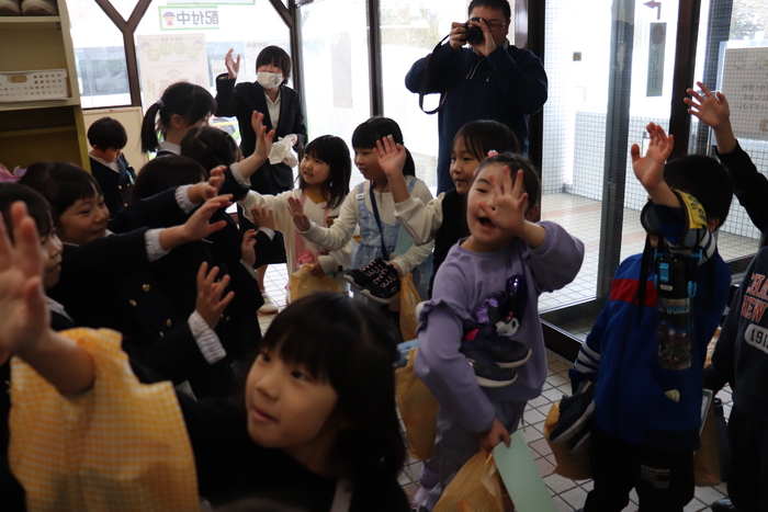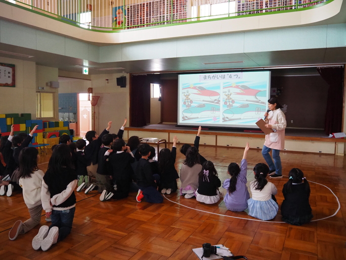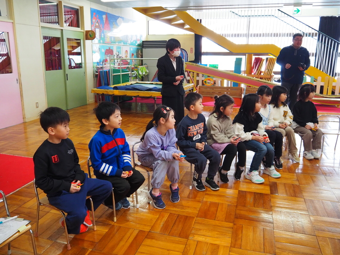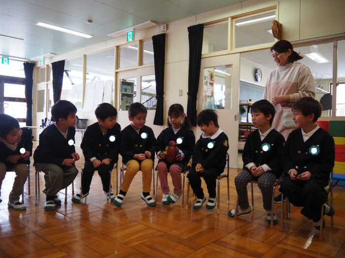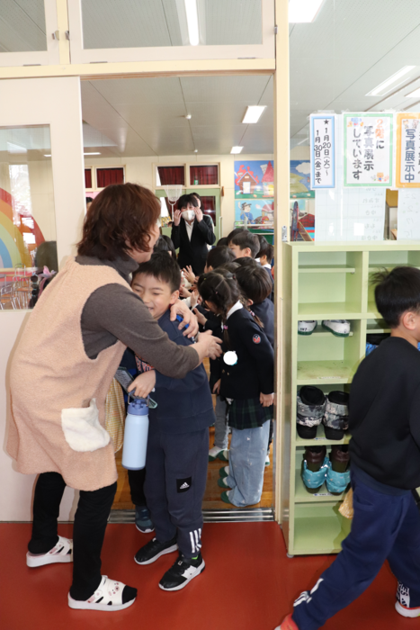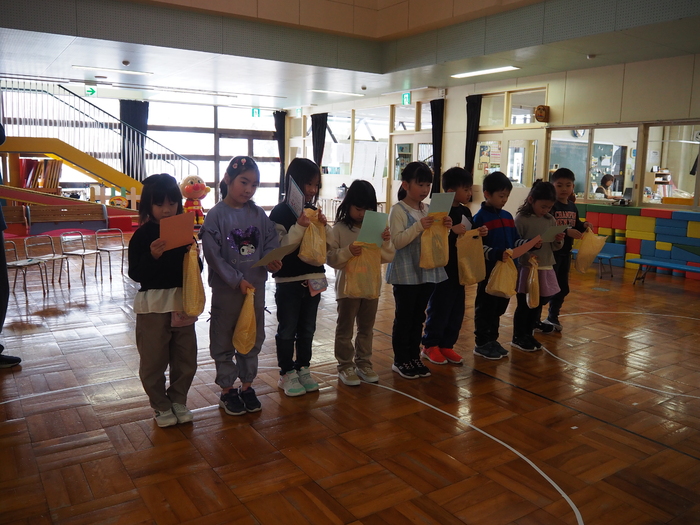 上芦別小学校の1年生と年長児との交流会がありました。 年長児からの歌と歓迎の言葉から始まり、 1年生VS年長児で、黒ひげ危機一髪をしました。 黒ひげを飛ばしてしまった人が玉入れに玉を入れ、入った玉の数の合計が多い方が勝ち!! 勝ったのは、1年生チームでした!! 次は、スクリーンで間違い探し!「あそこの角度が違う」「こっちは帽子を被っている!」などと大盛り上がり! お楽しみの後は、年長児からお手紙とプレゼントを渡しました。 その後は、1年生から歌のプレゼント!!!なんとアンコールまであって・・・目頭が熱くなる先生たちでした。 年長児にとっても、先生たちにとっても、楽しくて幸せな交流会。 素敵な機会をありがとうございました。 | ||