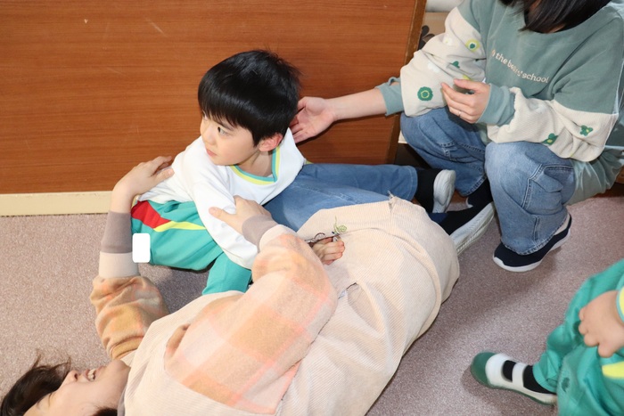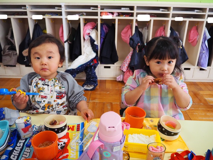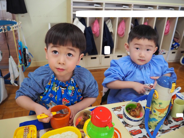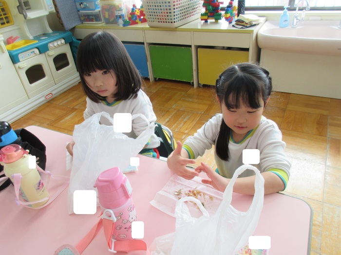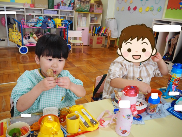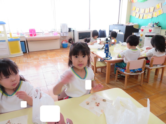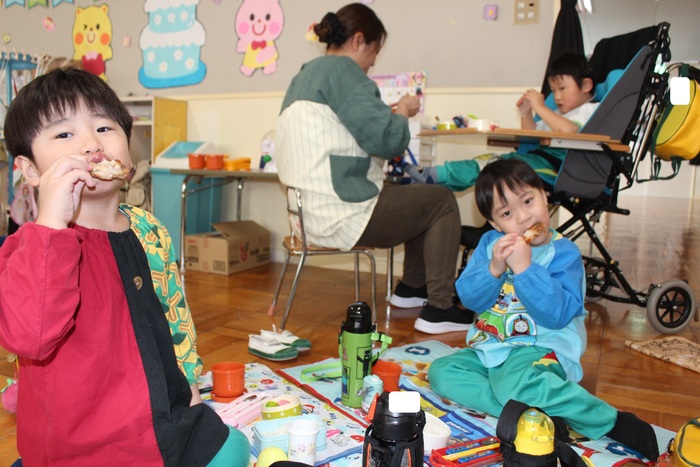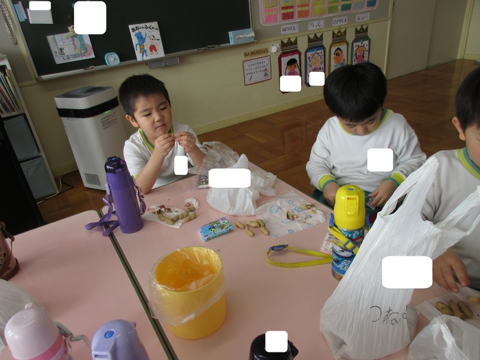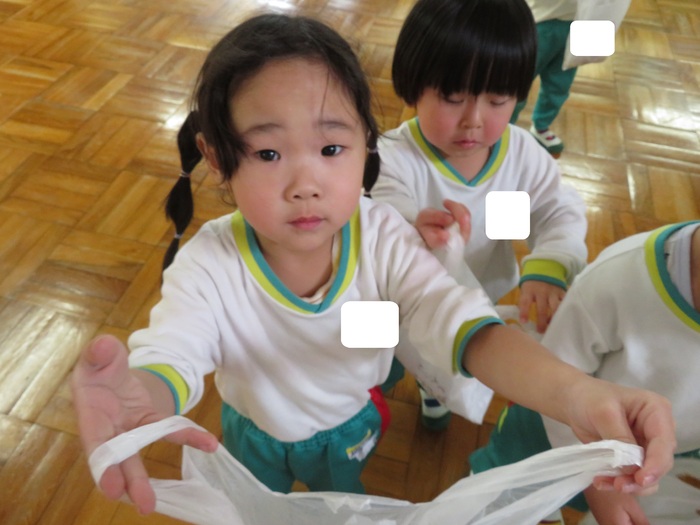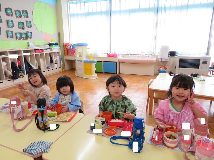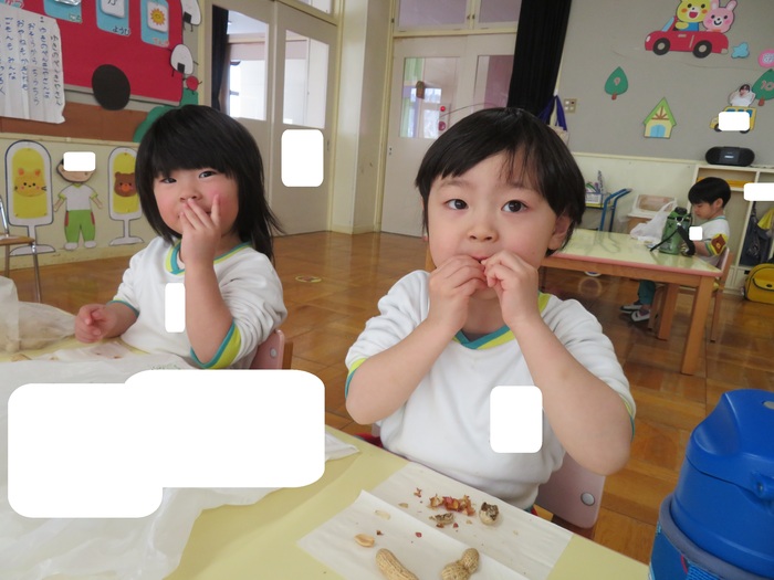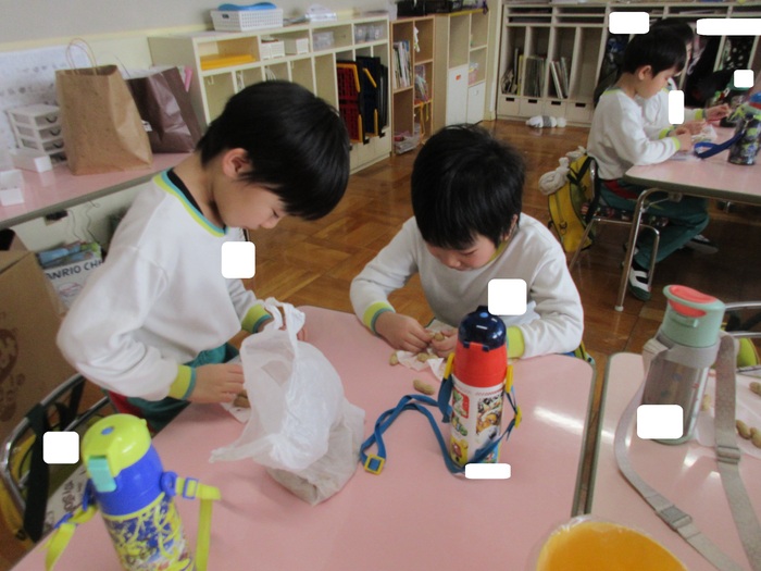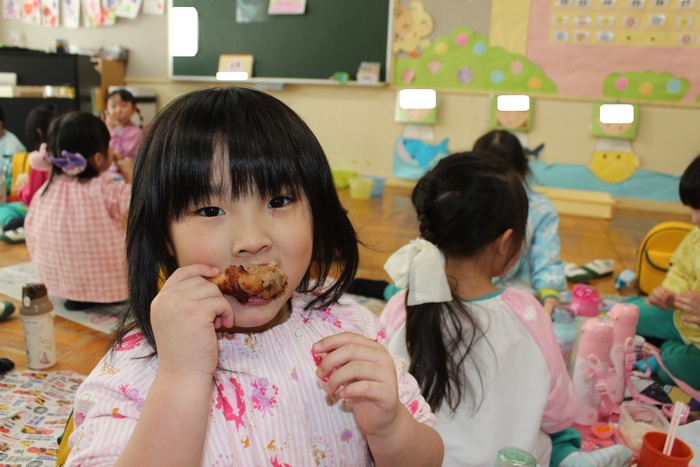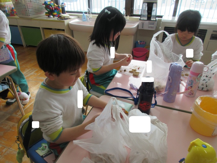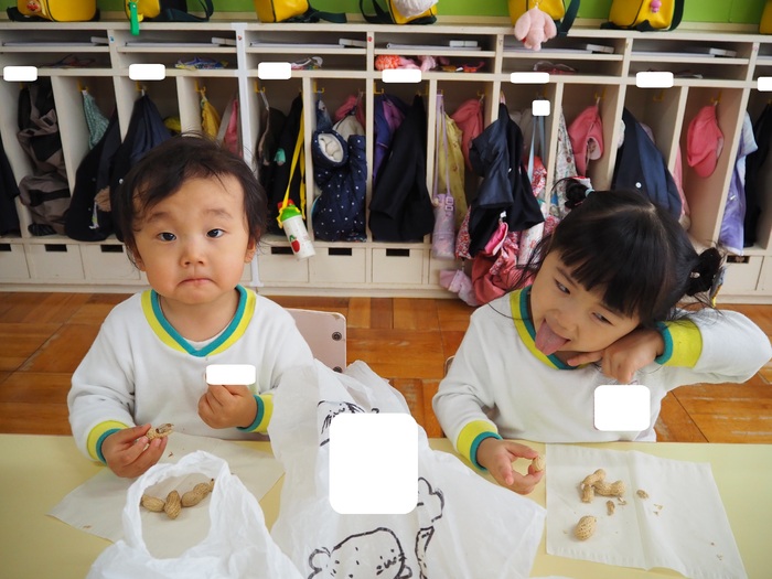 2月3日(火)節分、園でも〝豆まき会〟を行いました。『みんなが健康で幸せに過ごせますように…』という意味を込め、邪気払いとして『鬼は外、福は内』と言いながら豆まきを行う伝統行事。自分たちで作成した鬼のお面を付け『鬼が来たら、やっつけるぞ!』と楽しみにしていた子ども達。当日は、ホールに集まり〝節分〟についてのお話を聞き、♬豆まきの歌♪を歌っていると、鬼がどこからか出てくるのでは…と子ども達はドキドキ、ソワソワ(-_-;)。すると…掛け声とともに赤鬼が登場!! 怖くて泣きだしてしまう子や先生にしがみつく子、必死に逃げ回る子など等…。しかし、園長先生が豆を投げて退治しようとした瞬間にカゴに入っていた豆をすごいスピードで取りに来て『鬼は外、福は内!』と必死に鬼へめがけてまいていました。子ども達の勢いに負け、鬼が弱って退散していくとホッと安心した子ども達でした。 その後は、学年ごとに福の神の園長先生がまいた豆を拾って『豆まき』を楽しみました。給食時には、金棒チキンを子ども達は喜んで食べていました。鬼は、怖かったけれど子ども達は怖さに負けず頑張って〝鬼〟に立ち向かい、季節の行事を楽しみました。 | ||