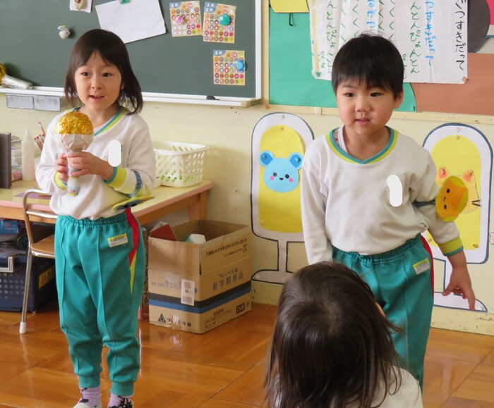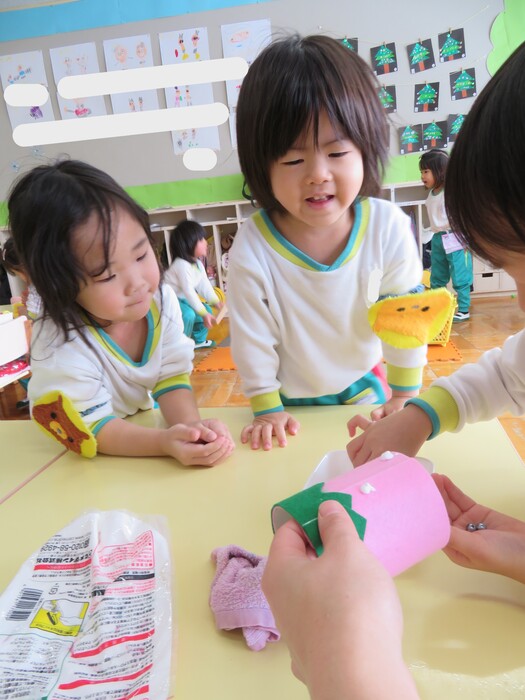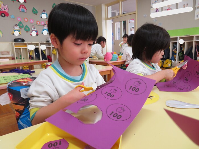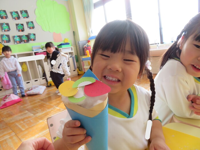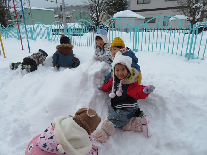 第2弾は元気いっぱいひまわり組のお友達! お店屋さんごっこに向けて品物作りをしています! 〖楽しい・まだやりたい〗などとても喜んで取り組んでいる子ども達です。 園庭では冷たい雪に触れながら遊んだり、かまくらに入ったりとっても楽しそうです。 そんなニコニコいっぱいのひまわりさんの様子をご覧下さい | ||