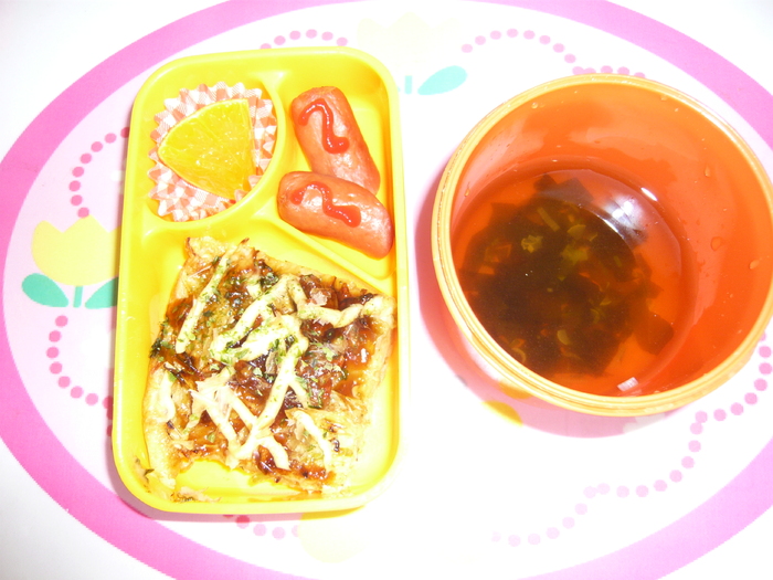令和8年 3月12日(木) ★ お好み焼き ★ 焼きフランク ★ すまし汁 ★ みかん缶 | ||