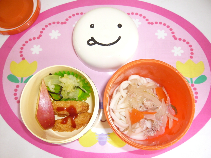 令和8年 3月13日(金) ★ エビカツ ★ キャベツの昆布和え ★ 豚汁うどん ★ りんご | ||