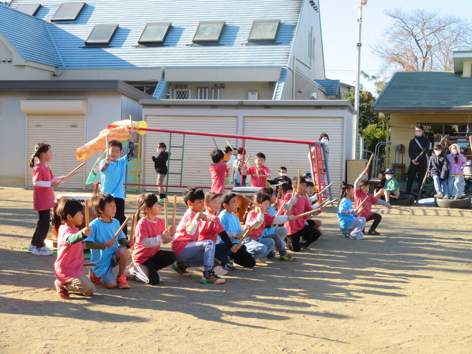 年長さんによる元気な太鼓でお祭りがスタート | ||