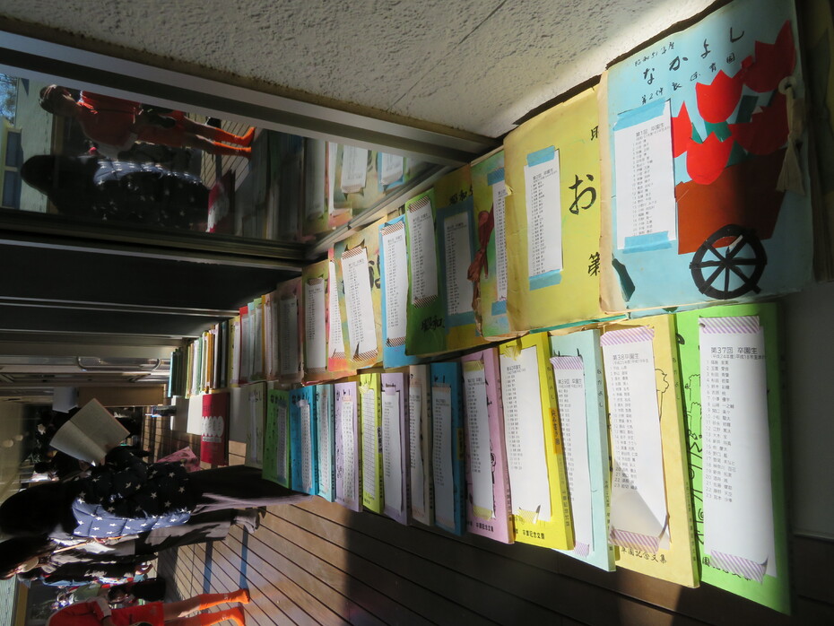 50年分の卒園文集を展示しました。思い出いっぱいです! | ||