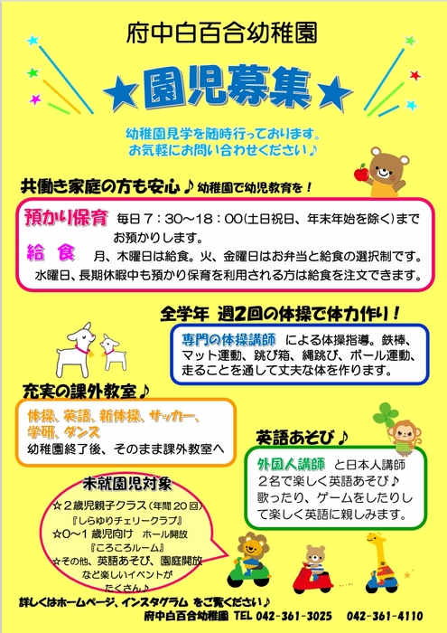 令和7年度未就園児クラス 「しらゆりチェリークラブ」 入会申し込み受付中♪ | ||