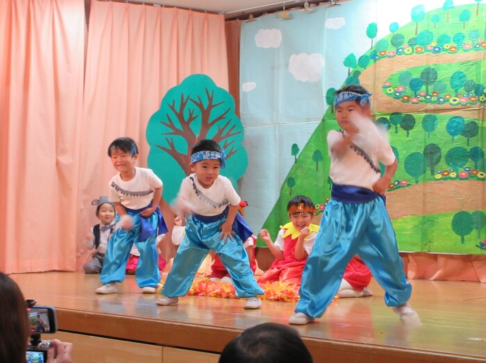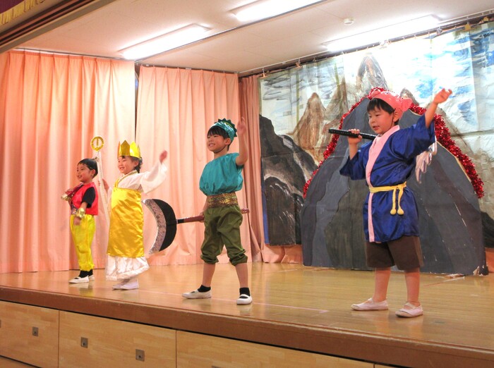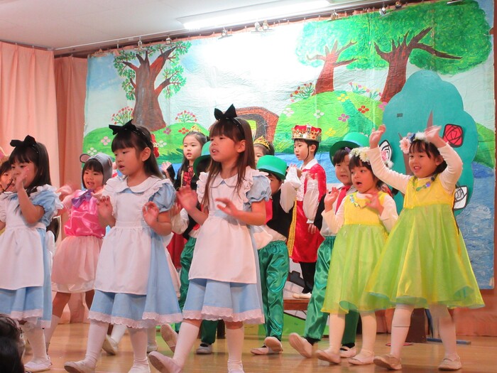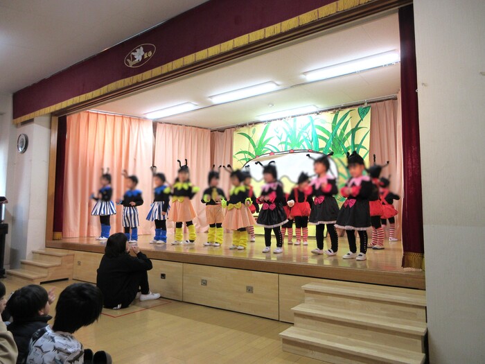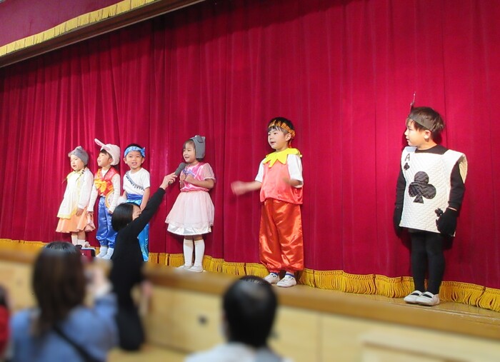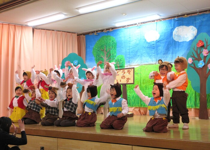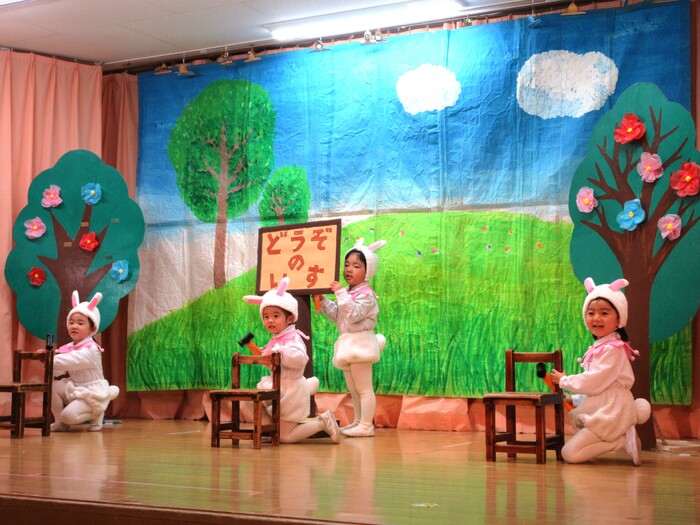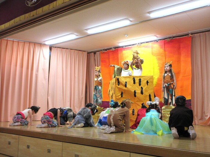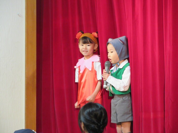 おゆうぎ会を行いました。どのクラスの子ども達もおうちの方やお客さんの前で、張り切って演じていた姿が印象的でした。これまでの練習を通して自信がつき、お客さんの前で発表できる喜びが伝わる劇でした。大成功!! | ||