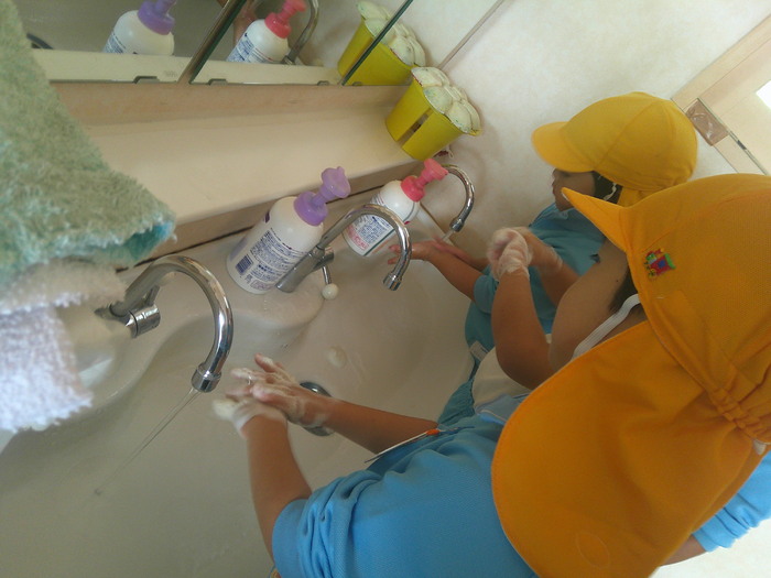 外遊びが終わると石けんを使い、