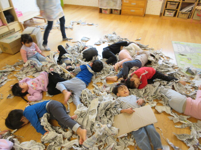 新聞紙あそびが大好きな子どもたち!