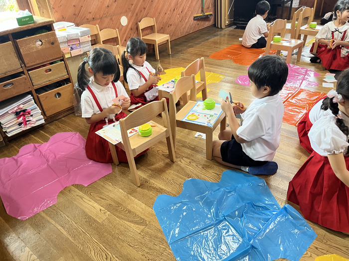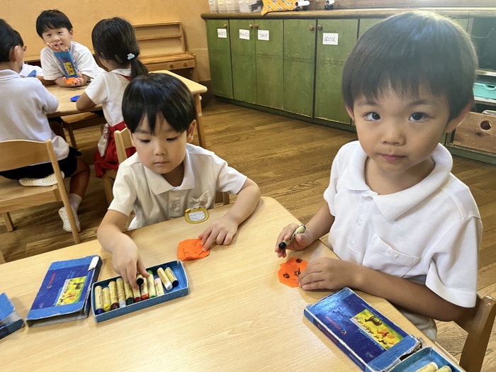 作品展が終わり、 子どもたちの中では 「つぎは発表会!」という声が 聞こえてきましたよ✨ 各クラスでは、 ハロウィーンの準備や 発表会の練習が すこしずつはじまり、 毎日がにぎやかです🎵 Aグループは、ハロウィーンの 飾り作りを楽しみながら、 発表会の役決めもしました🎭 「このやくがいい!」と 元気に手をあげる子もいて、 とても頼もしい姿でした😊 Bグループは、 オペレッタの練習と 折り紙に夢中です🎶 歌をうたいながら 動きをあわせたり、 折り紙でかわいいかぼちゃを つくったりしました🎃 Cグループはカンガルー公園で たくさん体を動かしました🌳 すべり台やジャングルジムにも チャレンジしましたよ😄 帰ってきてからは、 発表会に向けて カスタネットの練習をしました🎷 ふたばぐみは、 ハロウィーンの製作をしたあと、 神社へおさんぽへ行きましたよ⛩ 秋の風が気もちよく感じられる季節です🌾 以下は、その時の様子です🌱 | ||