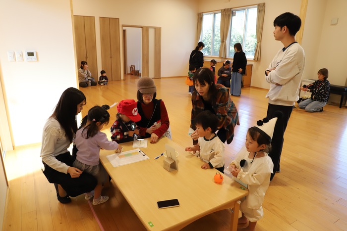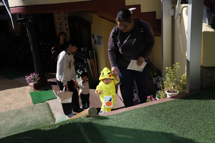 今日のふるふるは ハロウィーンの イベント企画でした🎃 今回は一部二部に分けず 全員同じ時間で開催したので、 これまでで一番と言える にぎわいでした✨ あちこちから わくわくした声が 聞こえてきましたよ👻 ハロウィーンということもあり 子どもたちもかわいい衣装で 参加してくださいました🎃 かわいいねと声をかけると にっこり返してくれる表情が とても癒されました🩵 イベントでは 自分の名前を伝えたり 積み木をつんだり 葉っぱを拾って 写真を撮ったりしながら ミッションを進めました💪 一つずつクリアして お菓子をゲットできた時の 「やった!」の顔に 大人もつい笑顔に なりました🍬 短い時間の中にも それぞれの成長が しっかり見えました👀 保護者といっしょに楽しみ、 またひとつ温かい思い出が 増えたのではないでしょうか🎃 以下は、その時の様子です🌱 | ||