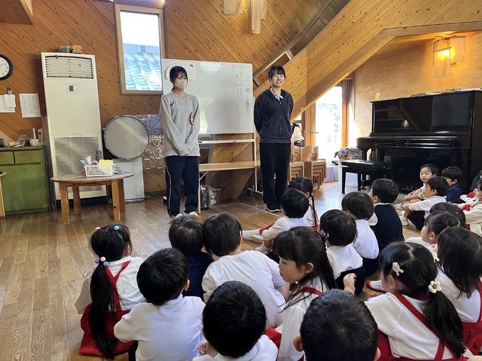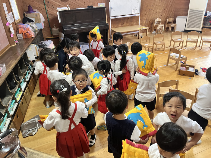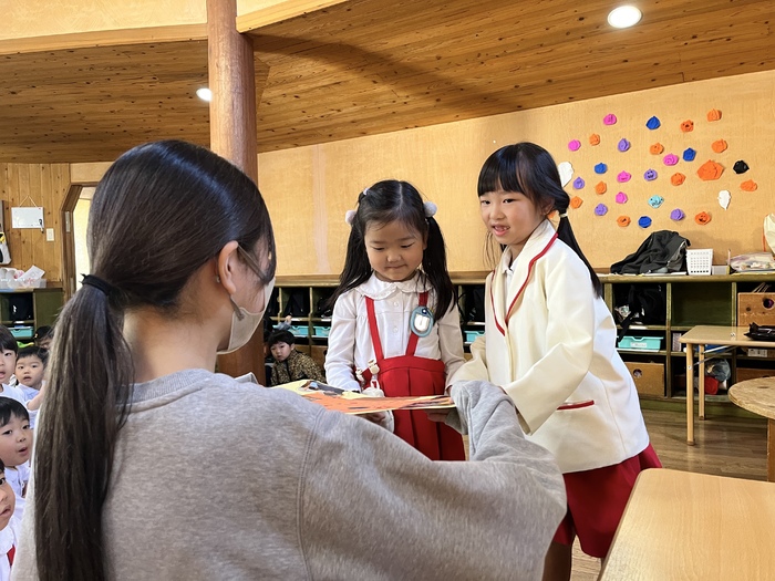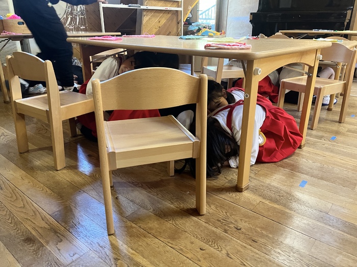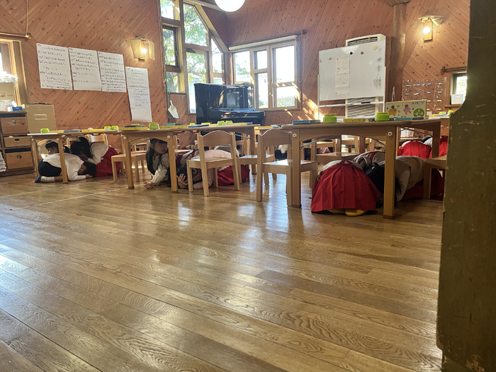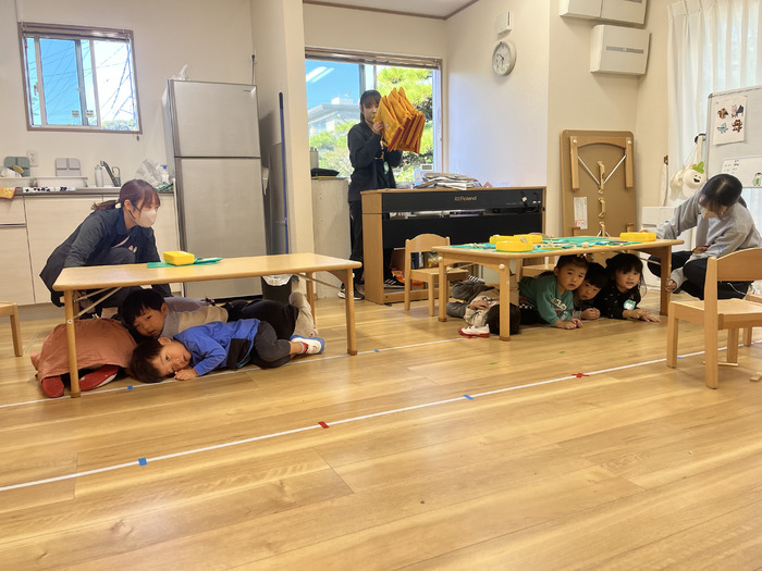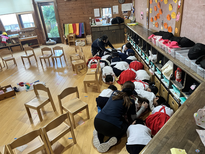 今日は、地震の 避難訓練を行いました🌍 サイレンの音が鳴ると、 子どもたちは ピタッと手を止めて、 先生の声をよく聞きながら 机の下に潜ったり、 頭を守る姿勢をとったり、 とても落ち着いて 行動していました👏 日頃の練習の積み重ねが 身についていることを感じ、 先生たちも安心しました。 また、今日は 実習生の先生との お別れ会もありました🎓 2週間一緒に過ごした先生に、 子どもたちから 心を込めて作ったお手紙を プレゼントし、 代表の園児が感謝の言葉を 伝えてくれました💌 「これからもたくさん 勉強頑張ってください」と 声をかける場面では、 子どもたちの優しい気持ちが お部屋全体に伝わって、 温かい時間になりました☺️ 以下は、その時の様子です🌱 | ||