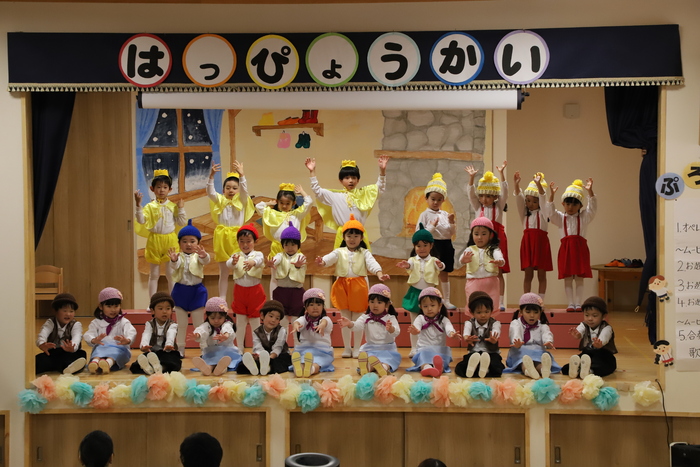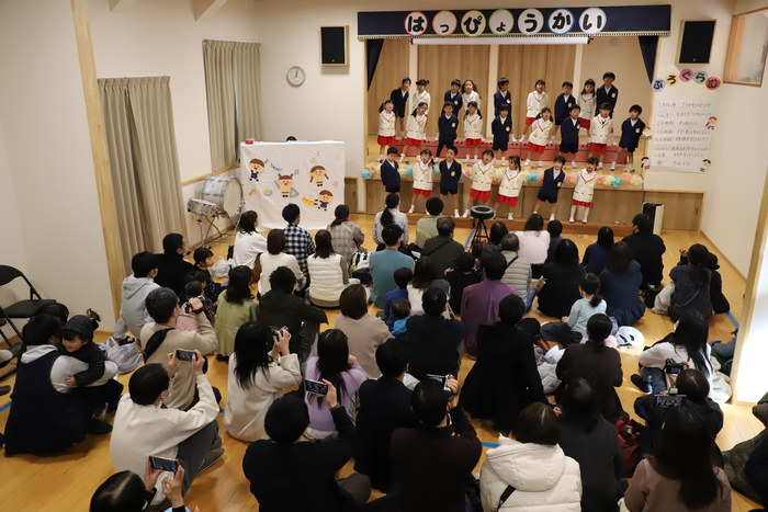 ついに子どもたちが 楽しみにしていた 発表会を迎える日が来ました✨ 今年は数名のお友だちが 体調不良でお休みとなり、 さみしい気持ちもありましたが 来てくれた子どもたちは、 ドキドキしながらも 精いっぱいの姿を 見せてくれましたよ💪 保護者の方には本番まで、 感染を広げないようにと 登園を控えてくださったり、 これまでたくさんのご協力や お子さまへの温かいフォローを してくださったりと 心から感謝しています。 今日という日を 迎えられたのは、 子どもたちの頑張りはもちろん 保護者の皆さまのお力添えが あってこそです! お家に帰ったら ステージの姿を思い出しながら どうぞご家庭でもたくさん ほめてあげてくださいね🌸 以下は、その時の様子です🌱 | ||