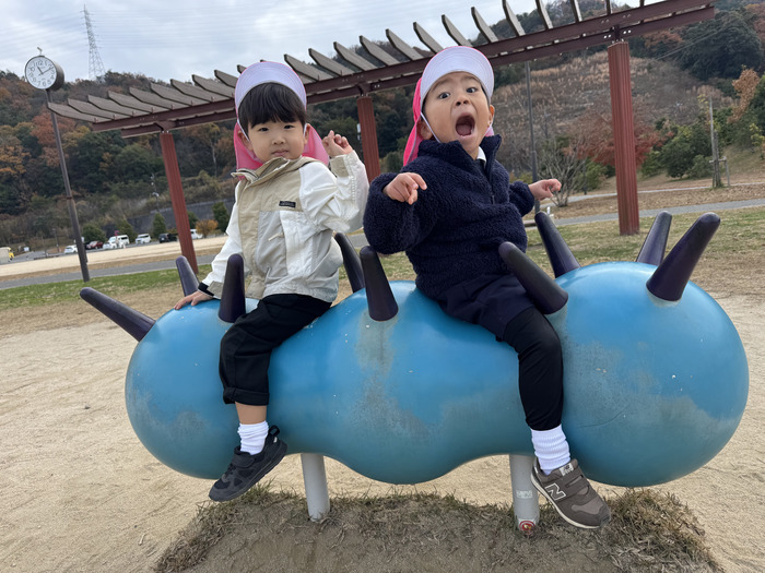 Cグループと ふたば組の子どもたちが、 芋掘り遠足でも訪れた 「そらの中央公園」へ、 プチ遠足に出かけました✨ 朝は少しお天気が 心配されましたが、 なんとか雨も降らず… みんなのワクワクが 届いたようでした😊 公園では、すべり台を 何度もすべったり、 広場で鬼ごっこをしたりと 元気いっぱいの姿が たくさん見られました🏃♂️💨 気温も思ったよりあたたかく、 芝生でおやつも食べたので 子どもたちの表情もにこにこ☺️ 先生たちも思わず笑顔になる 楽しい時間になりました🌈 これからも、季節の 気持ちよさを感じながら、 お散歩や外遊びを たくさん楽しんでいけたら うれしいなと思っています🌿✨ 以下は、その時の様子です🌱 | ||