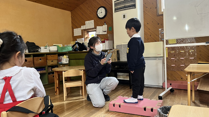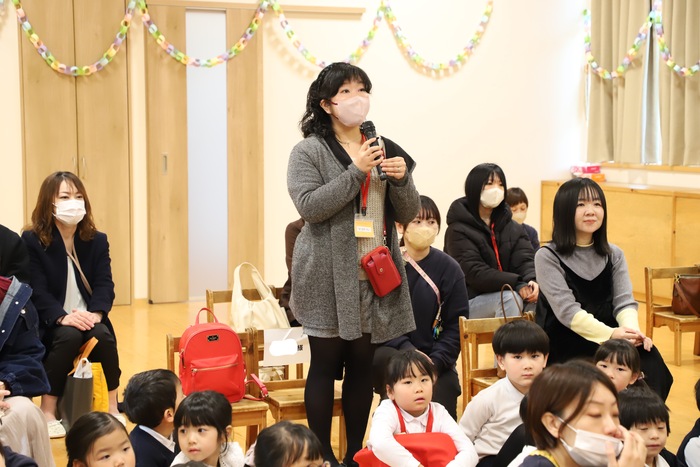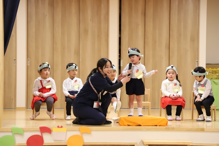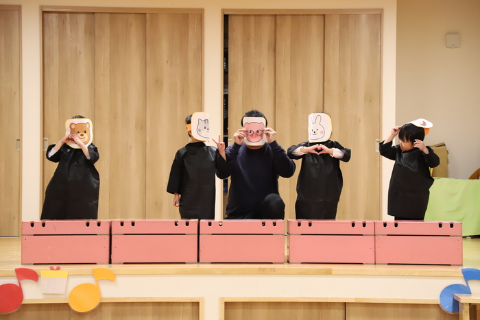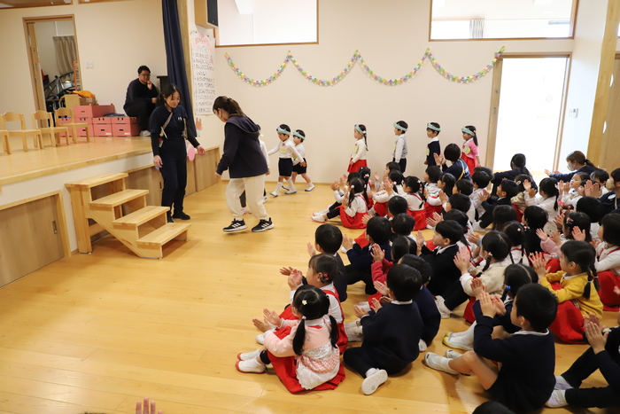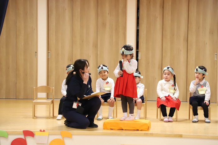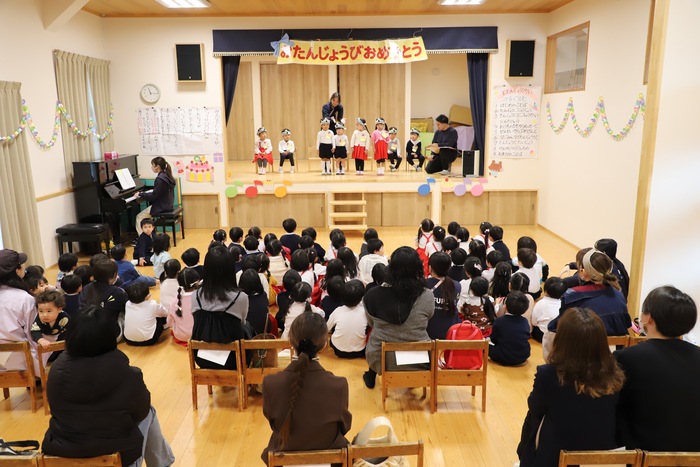 今日は、11月と 12月生まれのお友だちの お誕生日会を行いました✨ この日を楽しみにしていた 誕生児さんたちは、 少し緊張しながらも、 にこにこ笑顔で前に 出てくれました🎉 インタビューでは、 好きな食べ物や 好きな動物を答えたり、 みんなに誕生日の歌を 歌ってもらったりしました🎤 お友だちやお家の方からの あたたかい拍手に包まれ、 会場はほっこりとした 雰囲気になっていましたよ🎶 出し物では、 全身を衣装で隠した 我が子の「動き」だけを見て、 どれが自分の子か当ててもらう ゲームをしました🎭 さすがはお母さんたち、 余裕の全員が大正解👏 お昼からは、 誕生児さんとお家の方で 一緒に給食を食べました🍱 特別な時間を過ごし、 心に残る素敵な お誕生日会になりましたね😊 🎈お誕生日おめでとう🎈 以下は、その時の様子です🌱 | ||