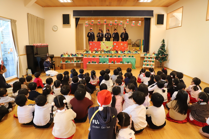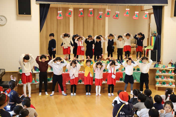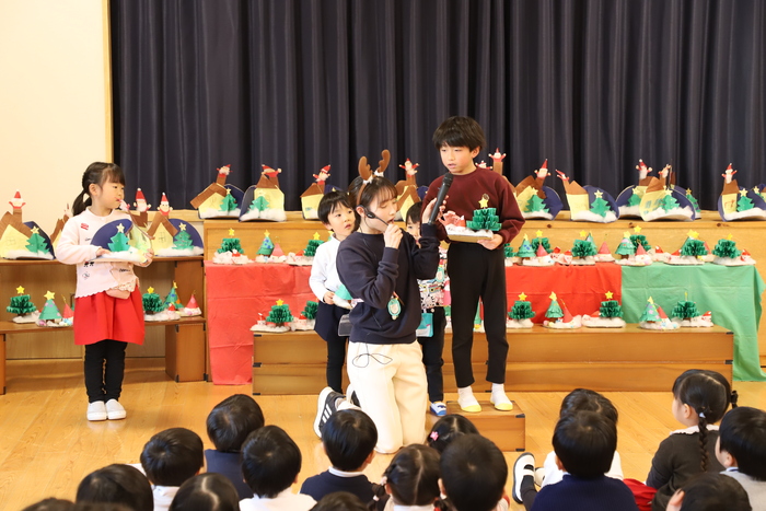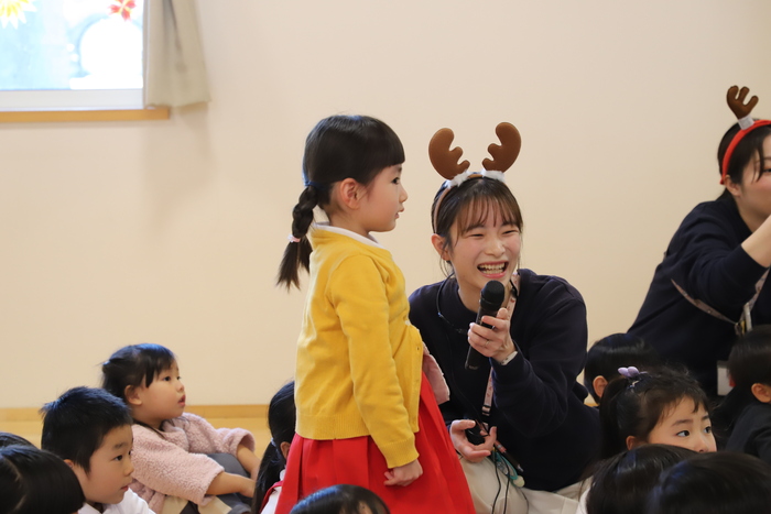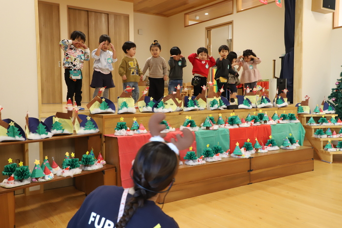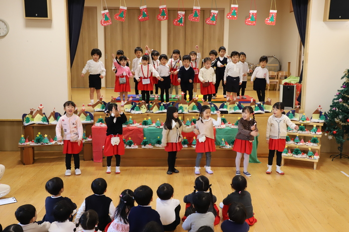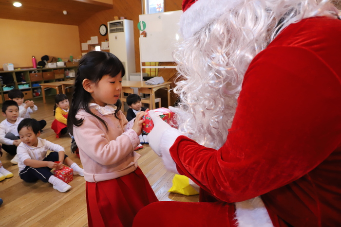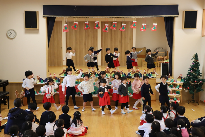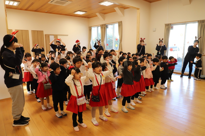 今日は、子どもたちが とても楽しみにしていた クリスマス会を行いました🎄 朝、登園してくると 「今日クリスマス会!」 「サンタさん来るんよね?」と、 とってもワクワクした 表情の子どもたちでしたよ😊 クリスマス会では 各クラスのクリスマスソングに 合わせたダンスの 見せ合いっこを楽しんだ後、 いよいよサンタさんが登場🎅 サンタさんへの 質問コーナーでは、 可愛い質問が出てきましたよ🩵