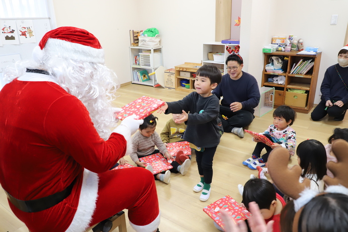 今日もらったプレゼントには どんなものが入っていたのかな? また先生に教えてね🎁 本日お休みしていた お友だちには、 登園された際に プレゼントをお渡ししますので、 安心してくださいね✨ | ||