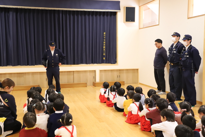 本日は、子どもたちの大切な 学びが二つありました😊 一つ目は、警察の方に ご協力いただいた避難訓練です🚓 不審者が園に侵入した場合を想定し、 実践的な訓練を行いました🚨 今回は警察官の方が不審者に扮し、 実際に門を飛び越えて園内へ入る という緊張感のある設定でした⚠️ 担任の先生はいち早く異変に気づき、 速やかに教室の鍵を施錠しました🔑 子どもたちは先生の指示のもと、 教室の奥や二階へ移動しました🏃♂️ そして、 不審者に見つからないよう 声を出さずに静かに身を潜めて しっかり隠れていました🤫 突然の出来事に驚きながらも、 真剣な表情で行動する姿が とても印象的でした✨ 日頃の積み重ねの大切さを、 改めて感じる時間となりました🕊️ 万が一の事態が起きないことが 何よりですが、いざという時に 自分の命を守る力を育てていくことも 園の大切な責任だと考えています🌱 | ||