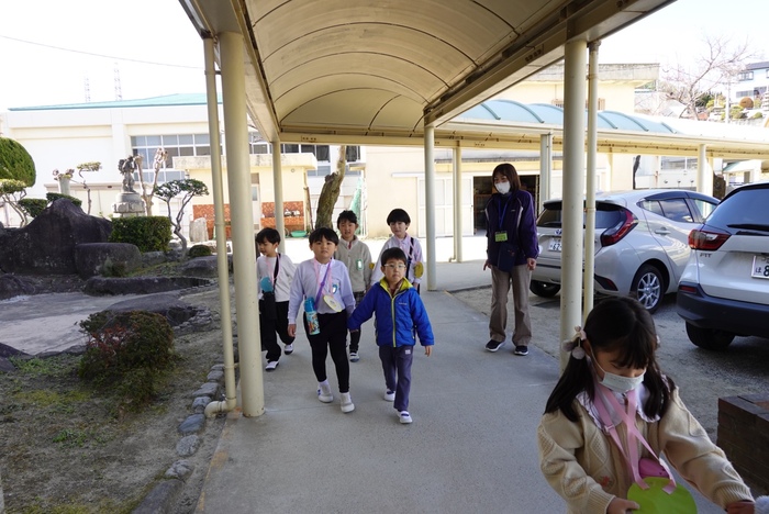 二つ目は、 Aグループが古田小学校を訪問し、 小学生体験をさせていただきました🏫 実際にランドセルを背負ったり、 教室の机の中を見せてもらったりと、 貴重な体験をさせていただきました🎒 子どもたちは目を輝かせながら、 意欲的に参加していたようです✨ 少し大きな椅子や机に座る姿は、 どこか誇らしげでした😊 「もうすぐ一年生」という実感が、 少しずつ芽生えてきているのでは ないでしょうか…?🌸 詳しい様子は、 ドキュメンテーションにて ゆみ先生が紹介しております📖 ぜひご覧ください👀 | ||